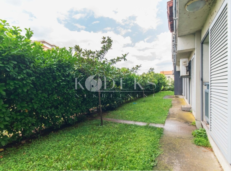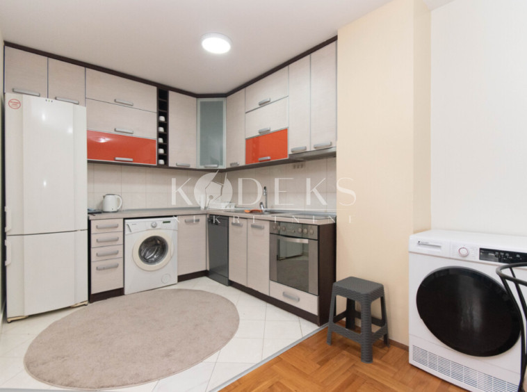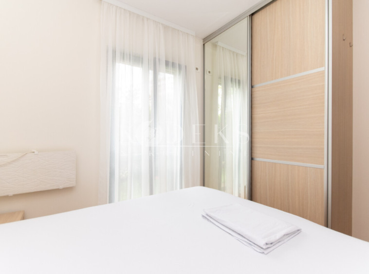 A furnished two-bedroom apartment is for rent located on the ground floor of a residential building in the 1. Maj neighborhood behind the Big Fashion shopping center.