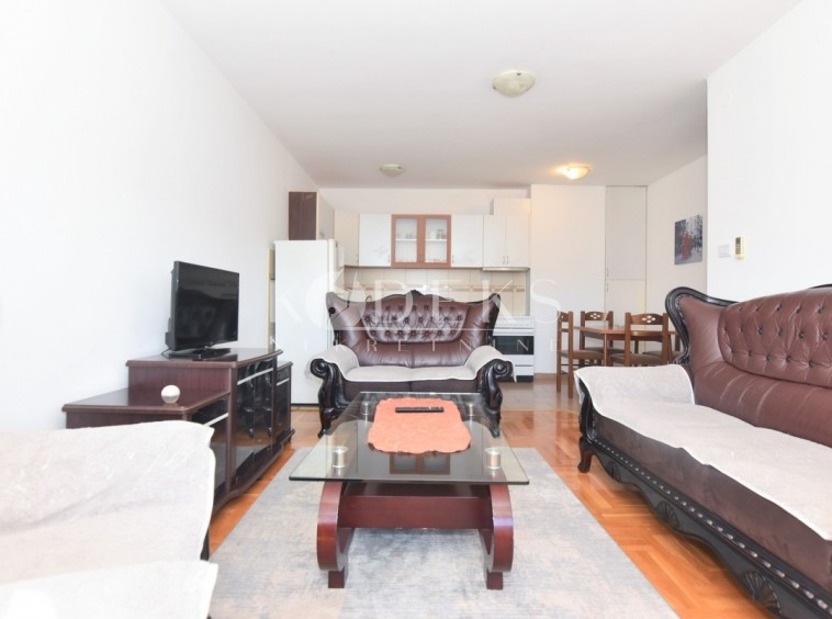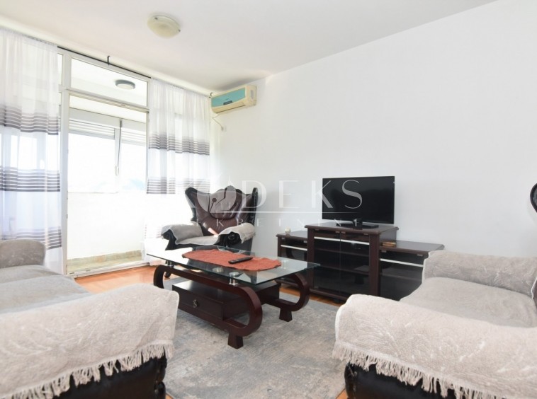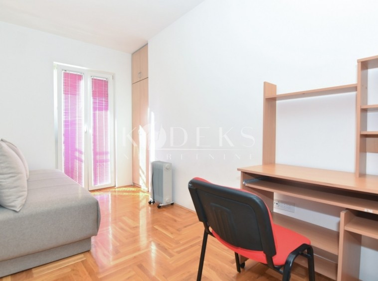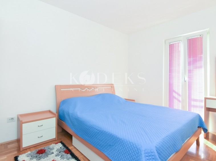 A beautifully furnished two-bedroom apartment is for rent located on the fourth floor of the Abex building in the 1. Maj neighborhood behind the Big Fashion shopping center.