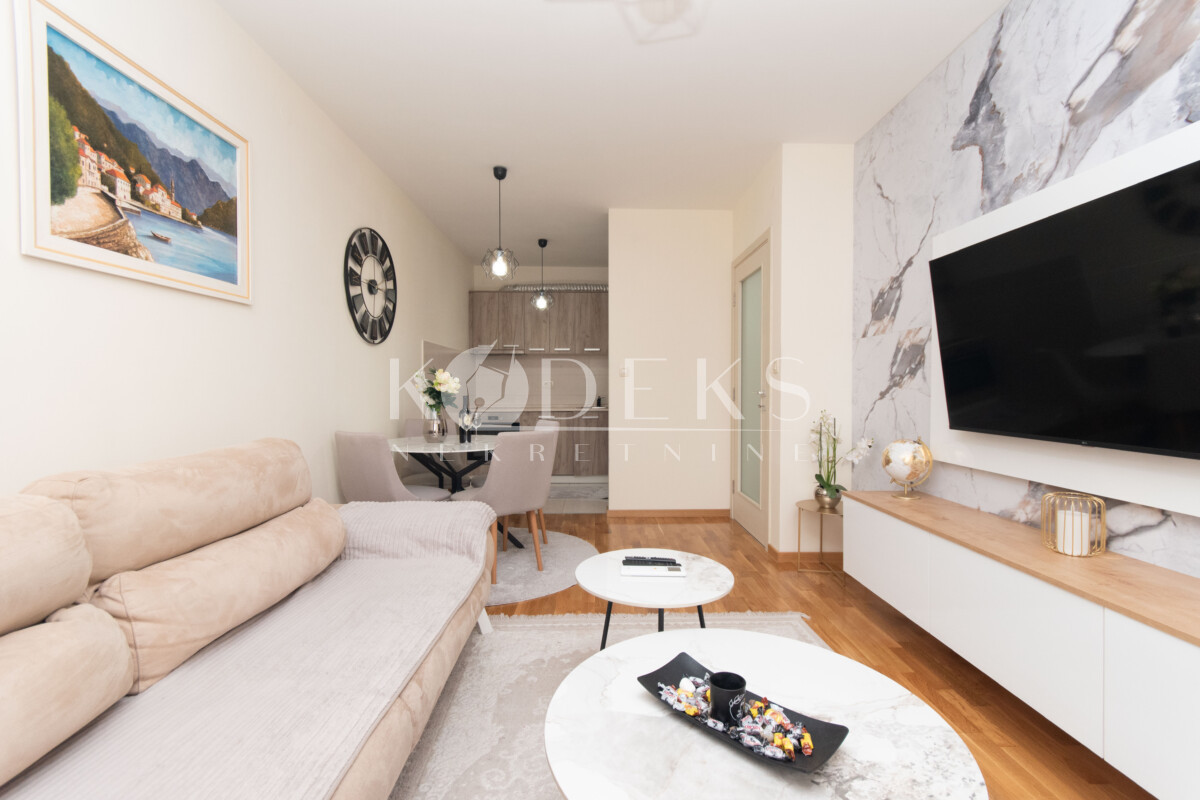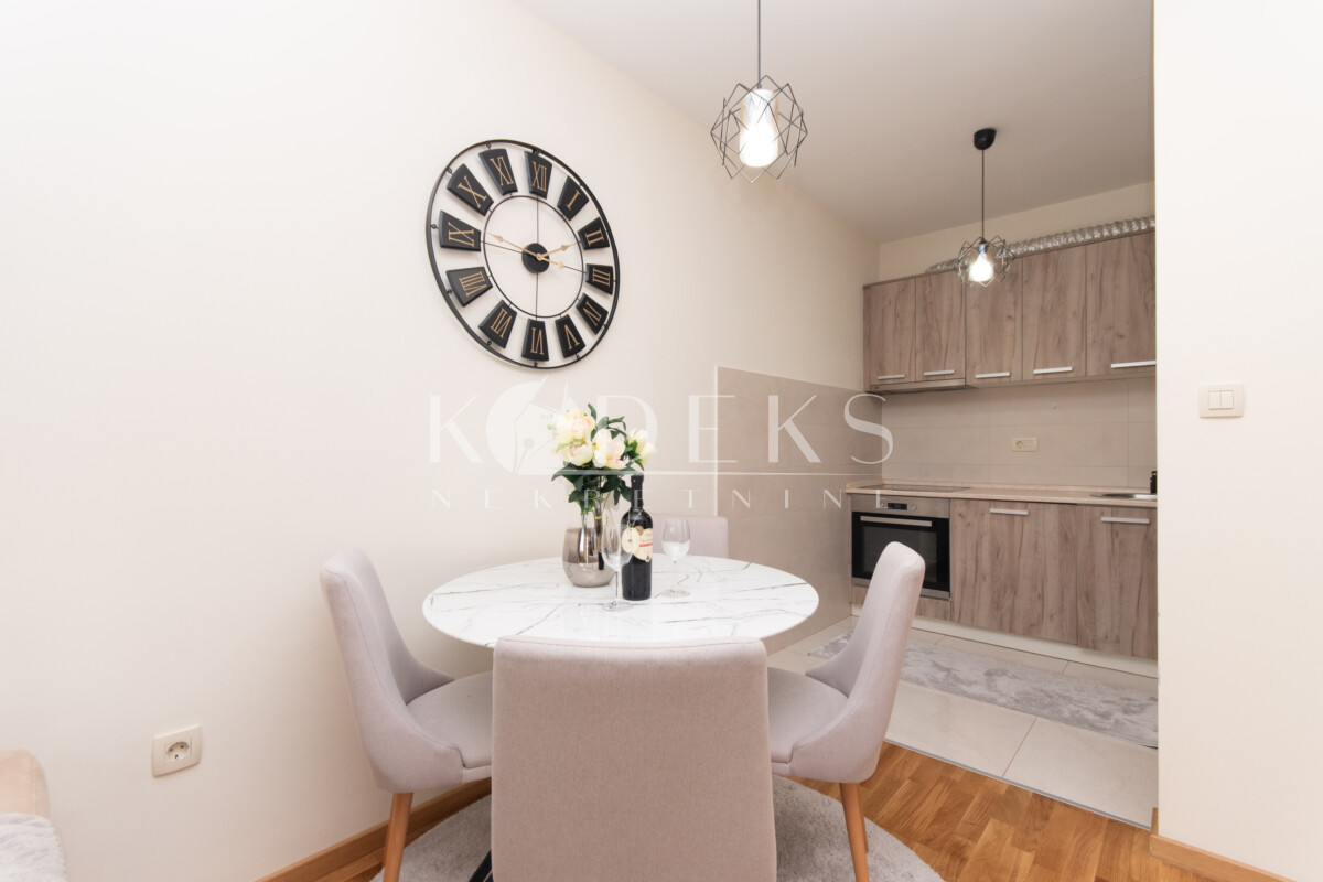 A luxuriously furnished two-bedroom apartment is for rent located on the eleventh floor (last) of the Zetagradnja residential building next to City Quay in Zagorič.
