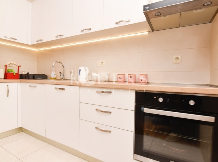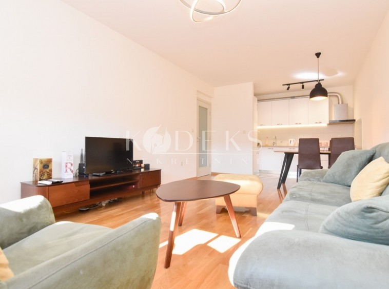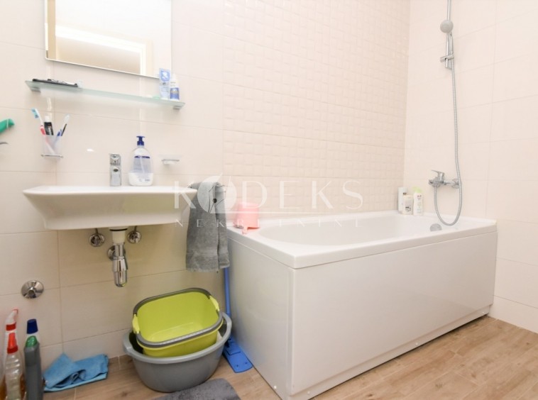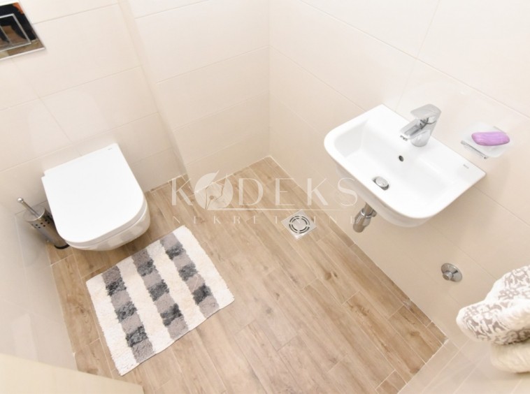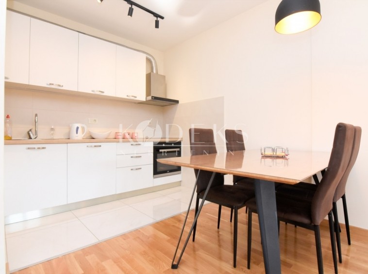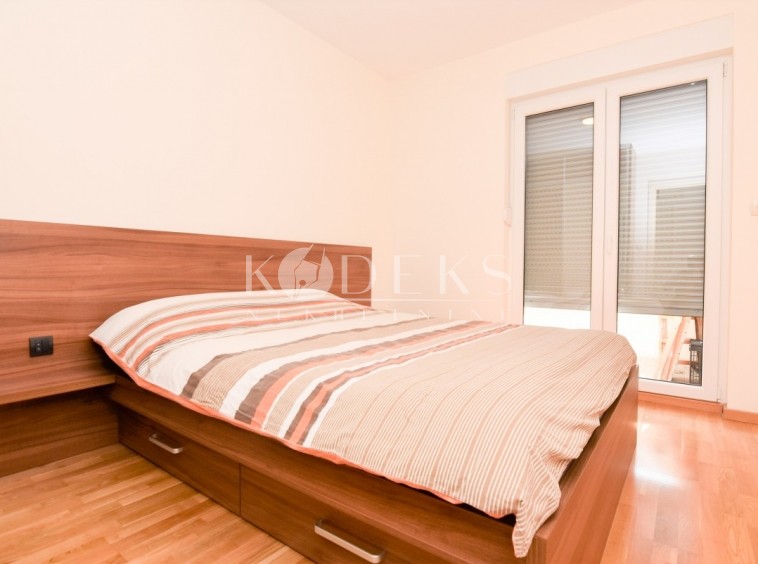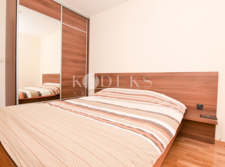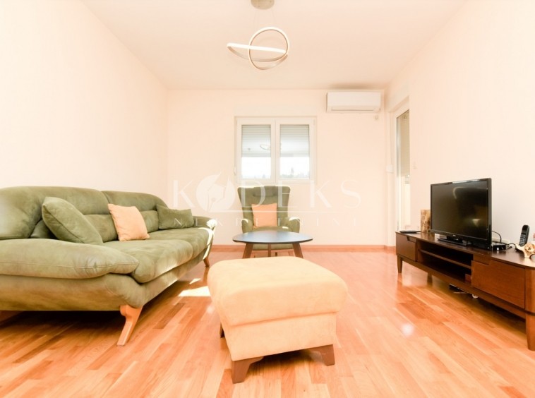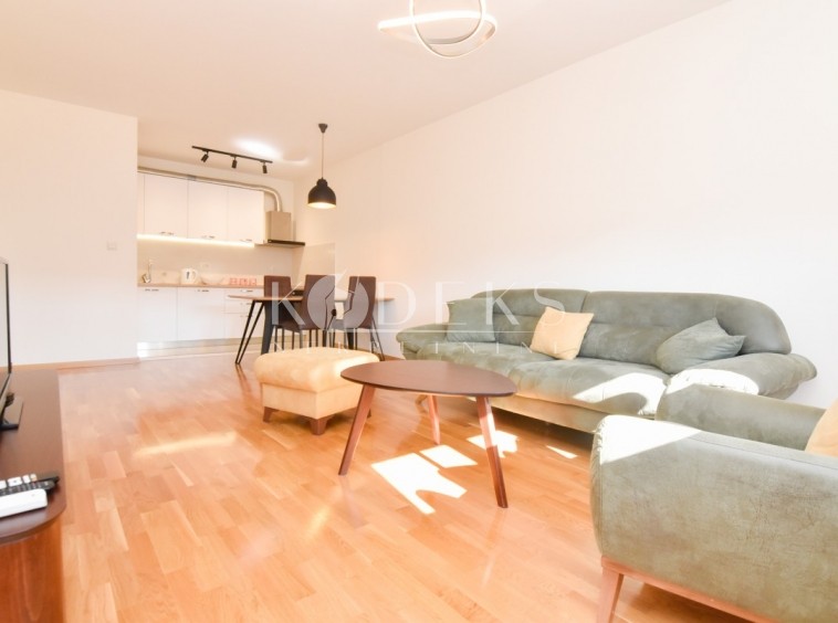 A luxuriously furnished two-bedroom apartment is for rent located on the second floor of the Zetagradnja residential building in Zagorič next to the City Quay on the very bank of the Morača River.