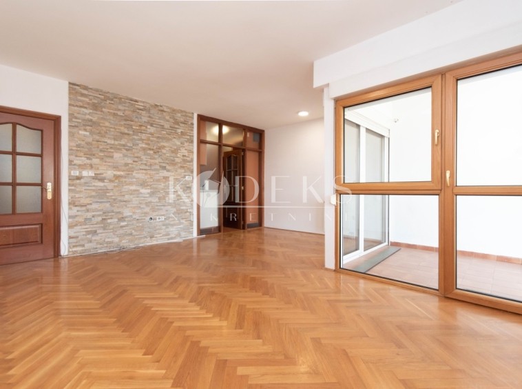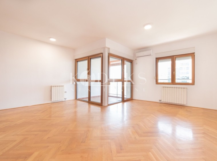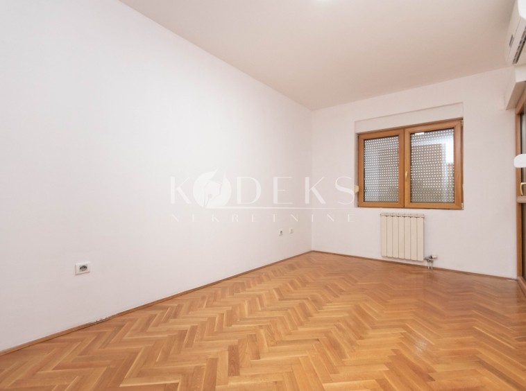 An unfurnished two-bedroom apartment is for rent located on the fifth floor of the Premier Hotel building in Preko Morace.