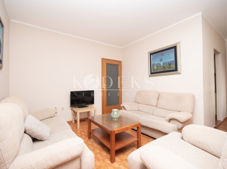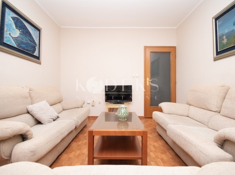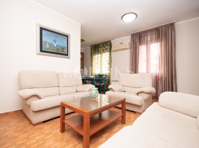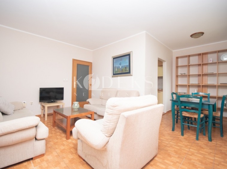 A beautifully furnished two-bedroom apartment is for rent located on the ground floor of the Cijevna komerc residential building in Zagorič, near the City Quay neighborhood on the banks of the Morača River.