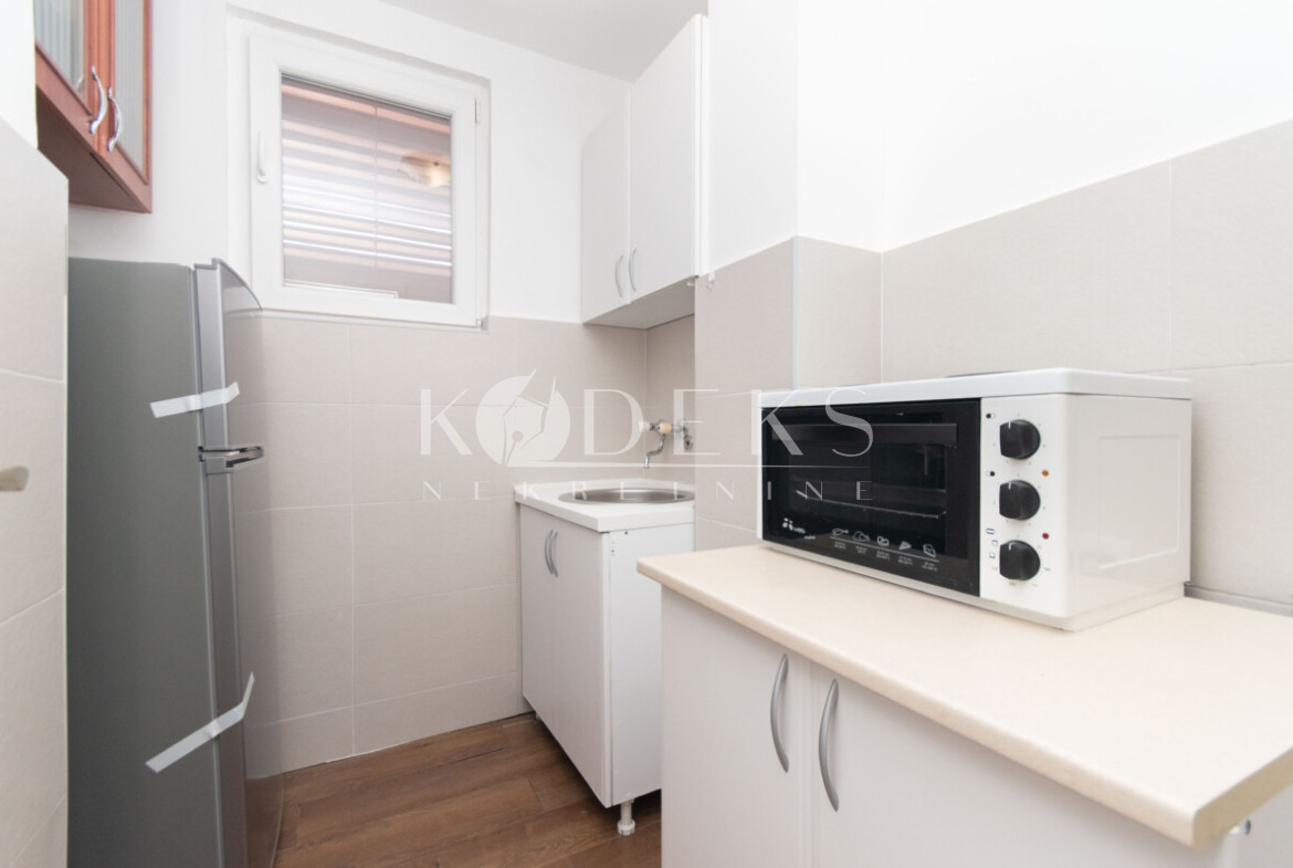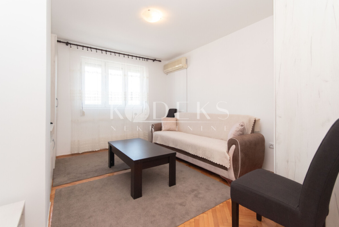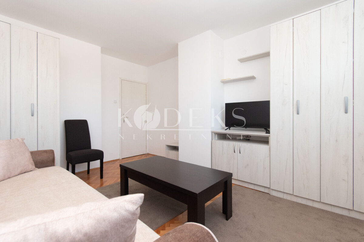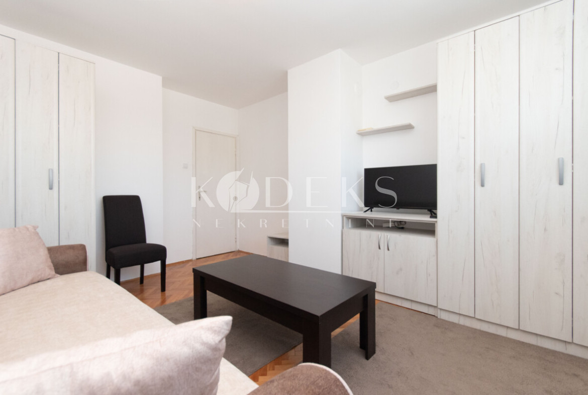 Furnished studio apartment for rent located on the 15th floor of a skyscraper (the last) in the Preko Morače neighborhood.