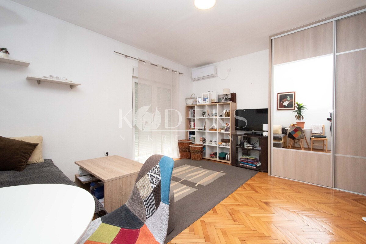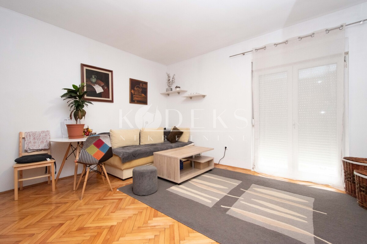 A furnished studio apartment is for rent located on the second floor of a residential building near Galerija Most.