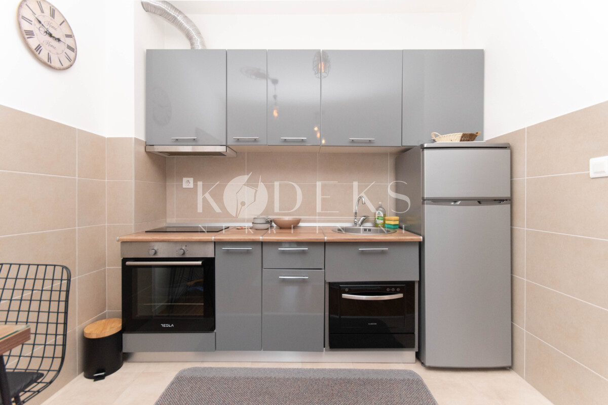 A nicely furnished one-bedroom apartment is for rent located on the first floor of the building next to the “Oktoih” Elementary School.