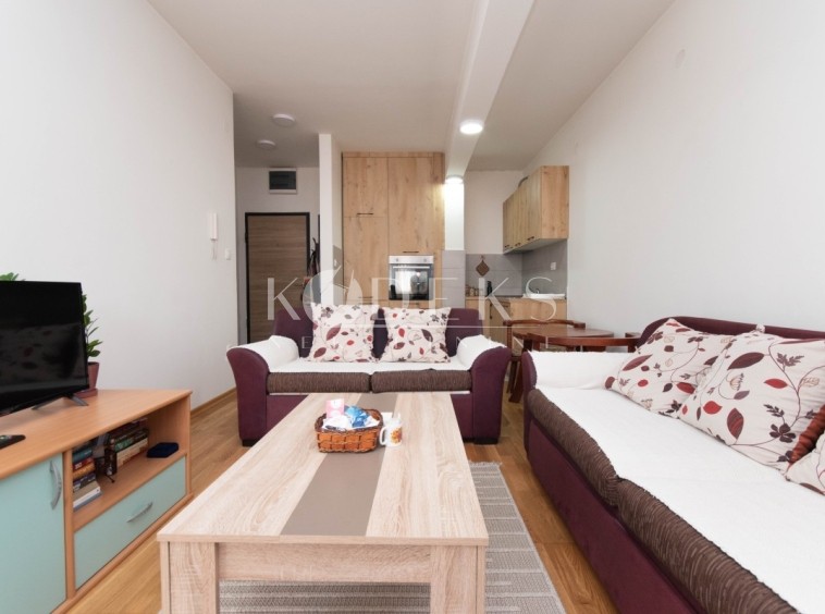 A nicely furnished one-room apartment is for rent located on the fifth (last) floor of a residential building in the Ljubović settlement.