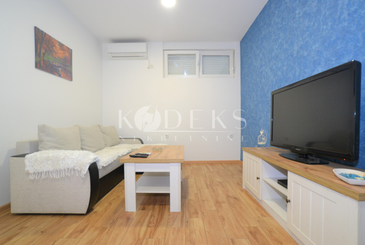 A furnished one-bedroom apartment is for rent located in the basement of a residential building in the 1. Maj neighborhood behind the Big Fashion shopping center.