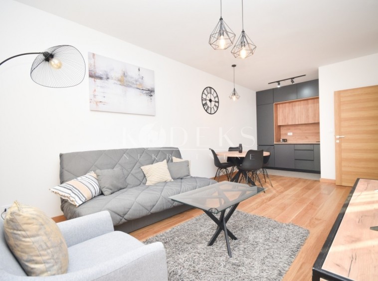 An unoccupied lux furnished one-room apartment is for rent, located on the third floor of the Kipsa residential building in the new neighborhood of New City.