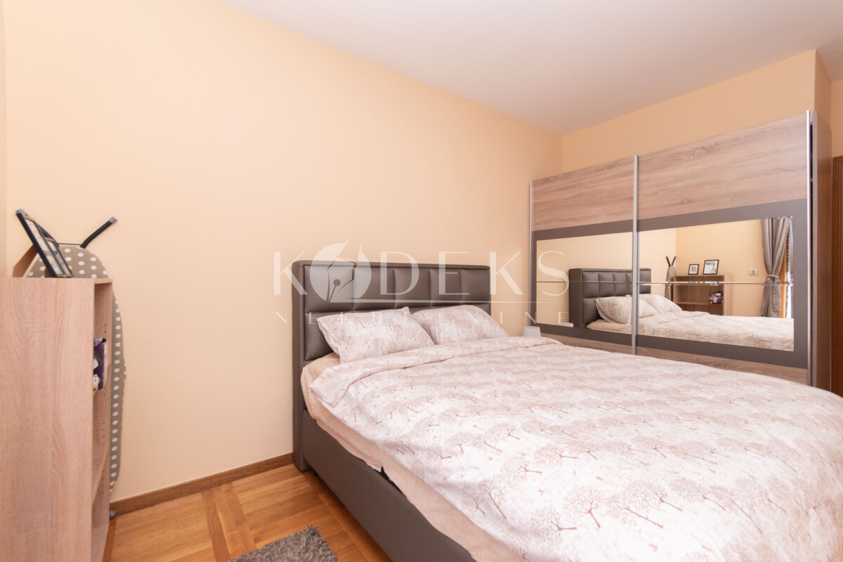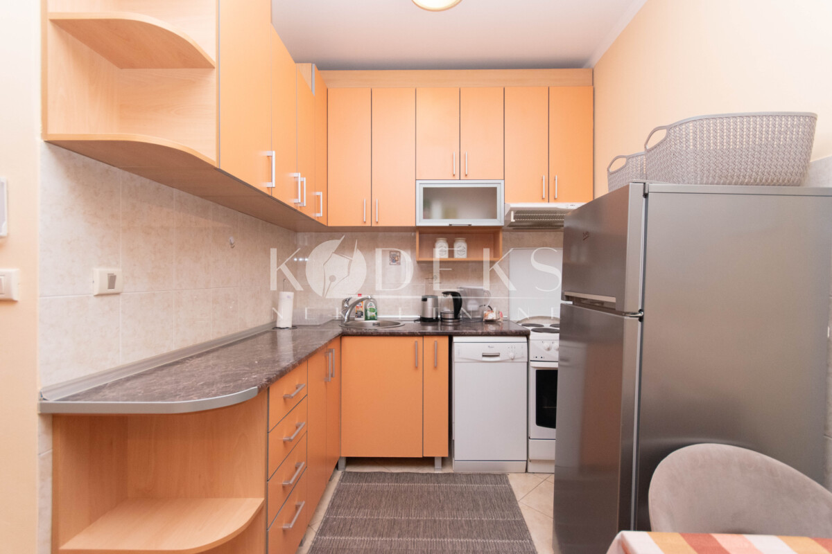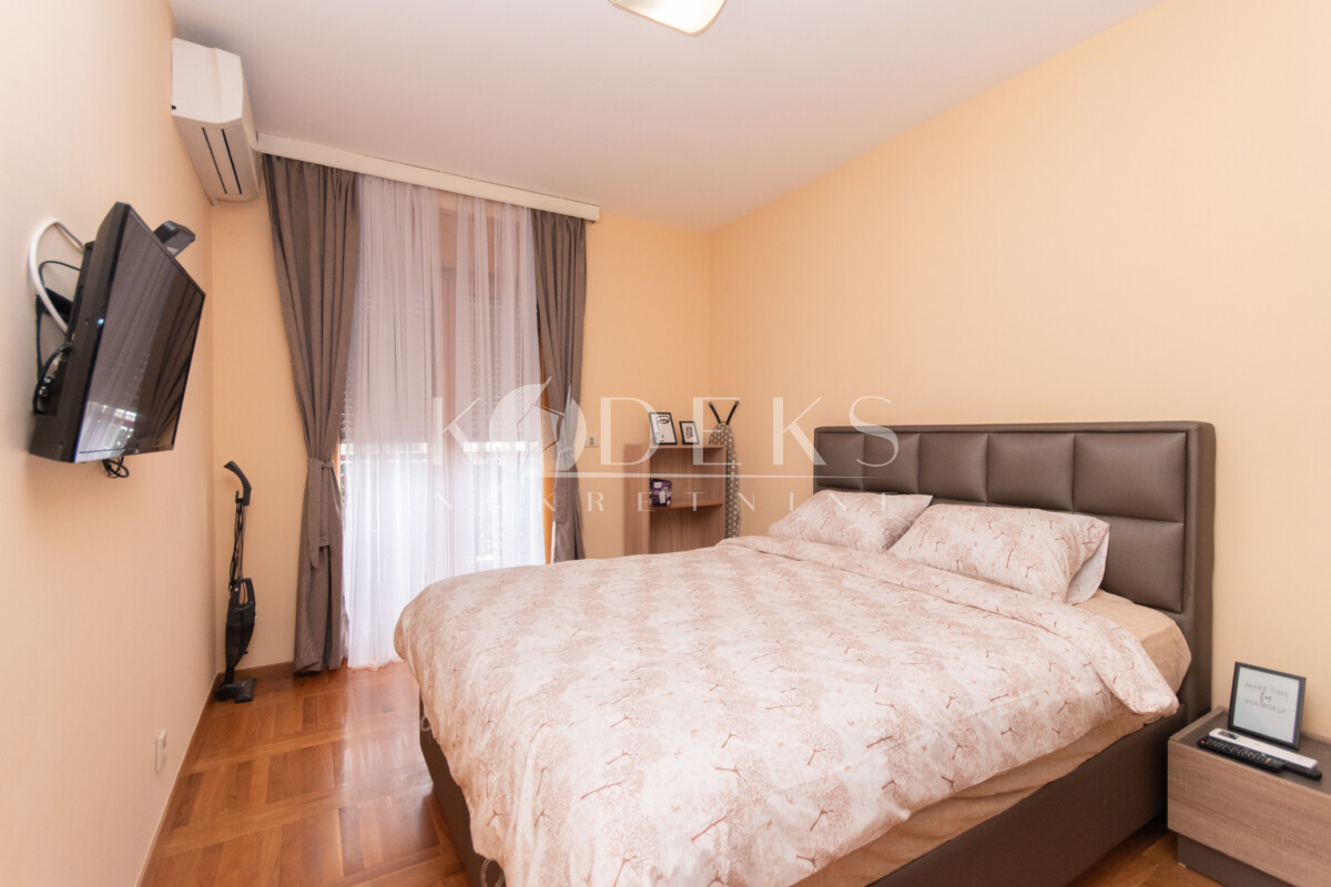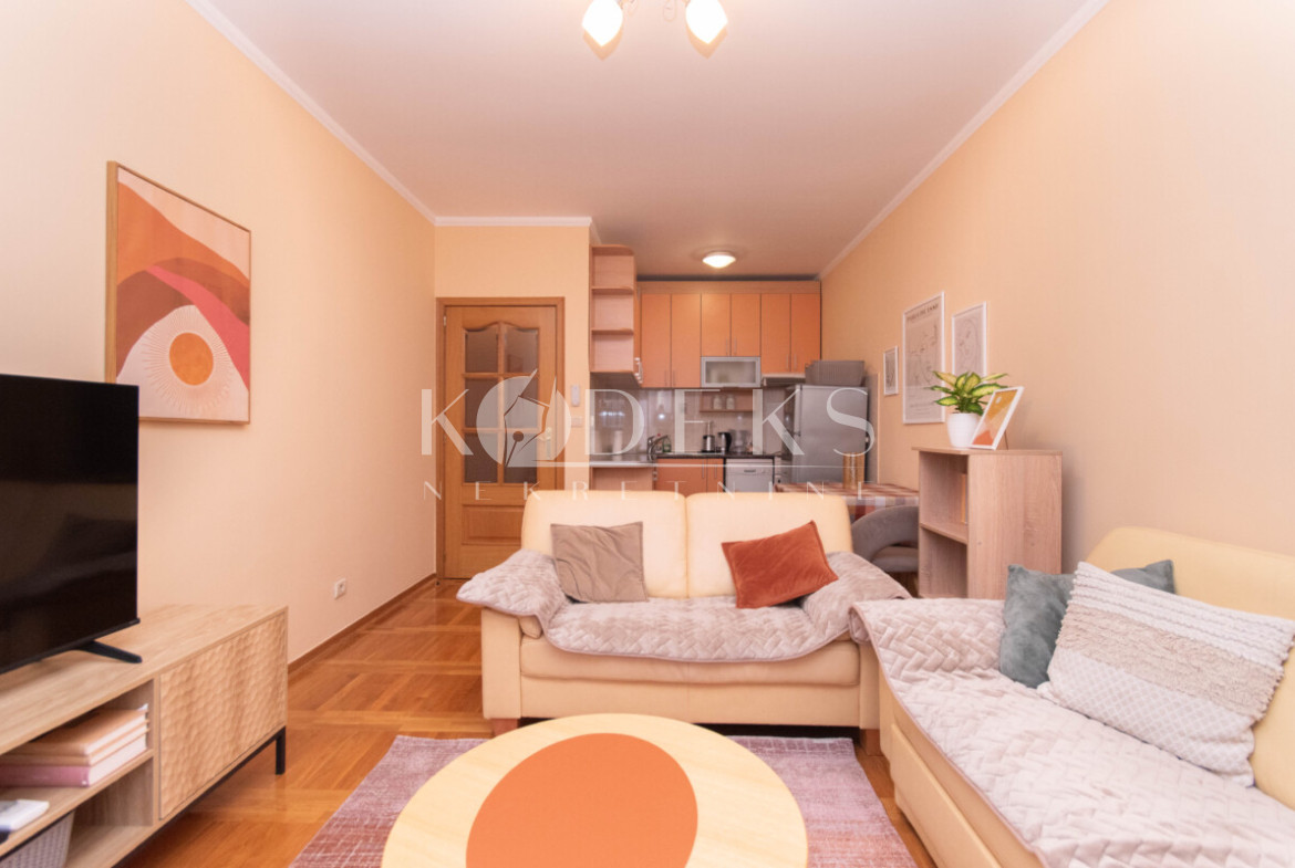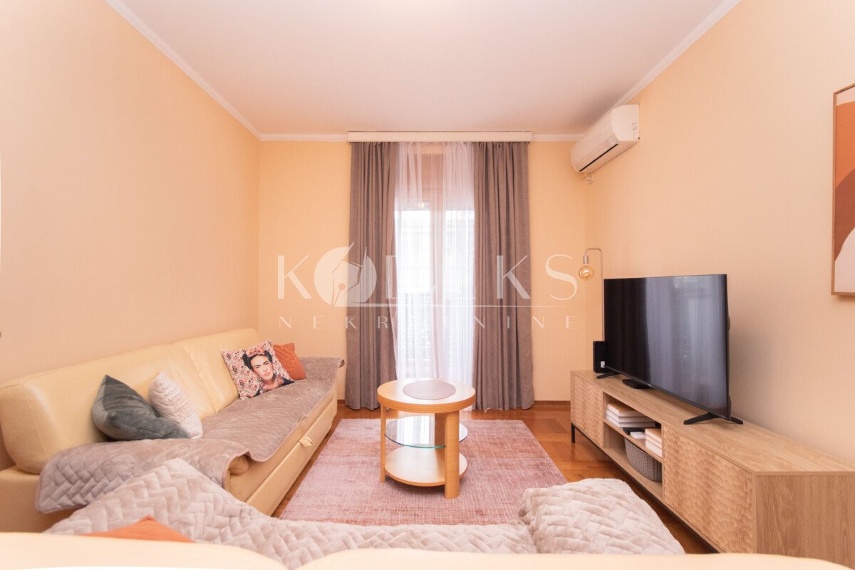 A furnished one-bedroom apartment is for rent located on the third floor of the Zetagradnja residential building in the Preko Morače neighborhood.