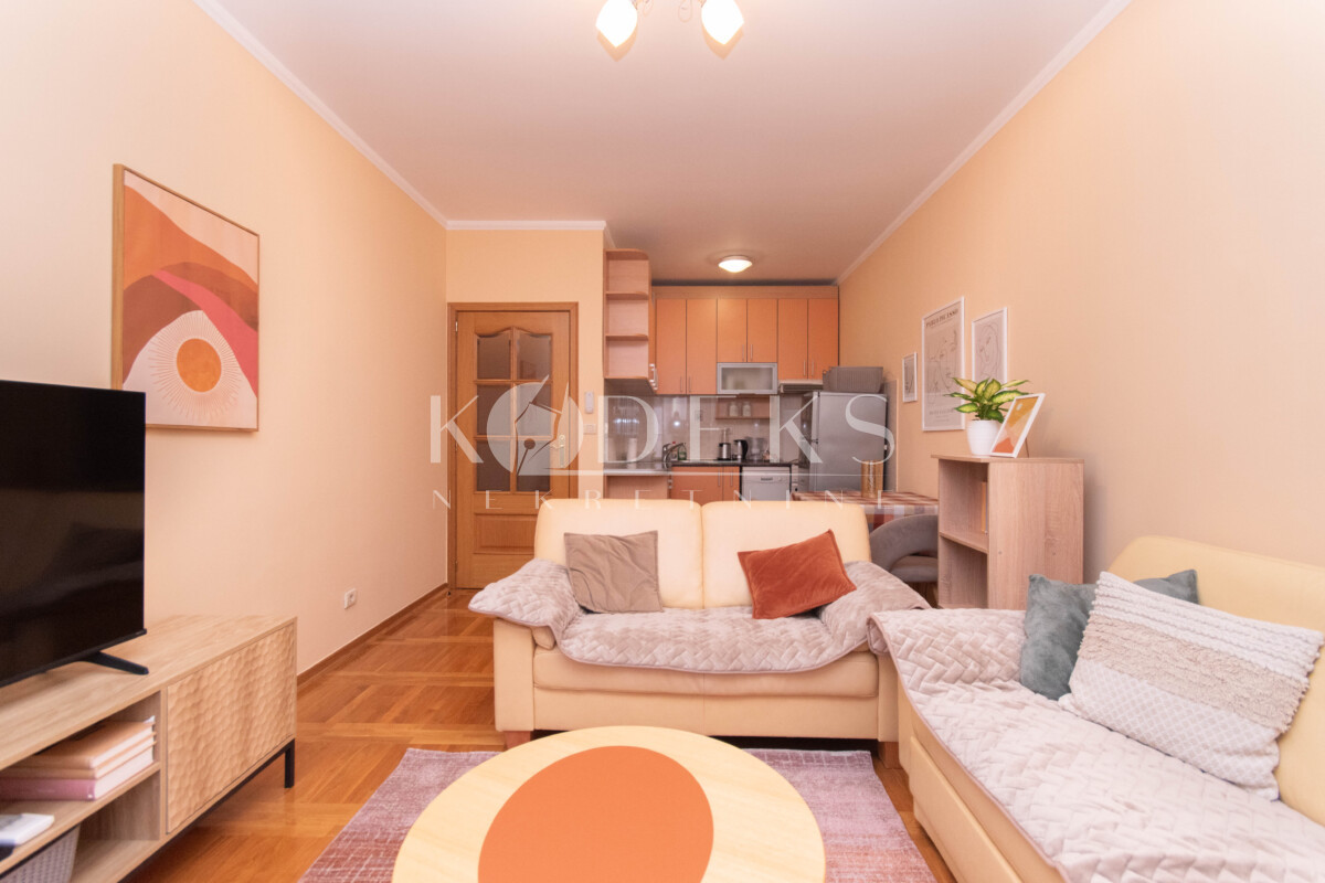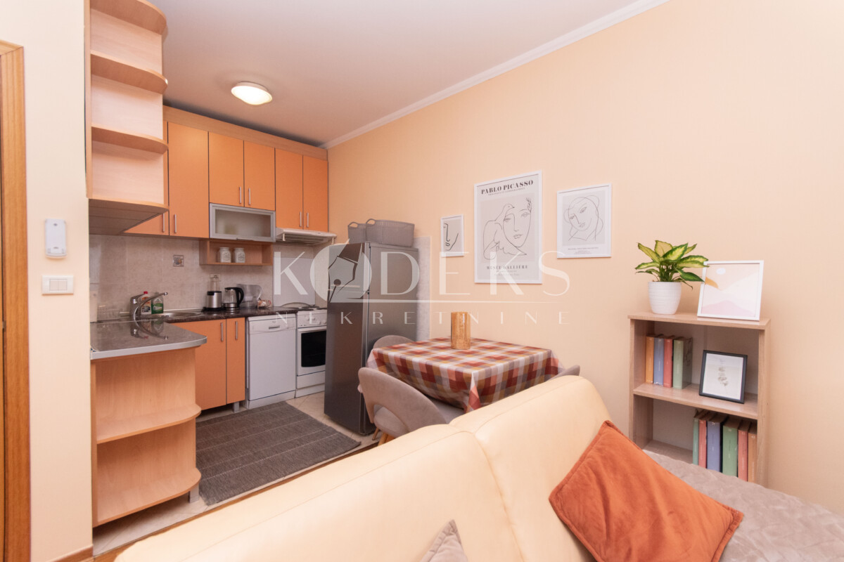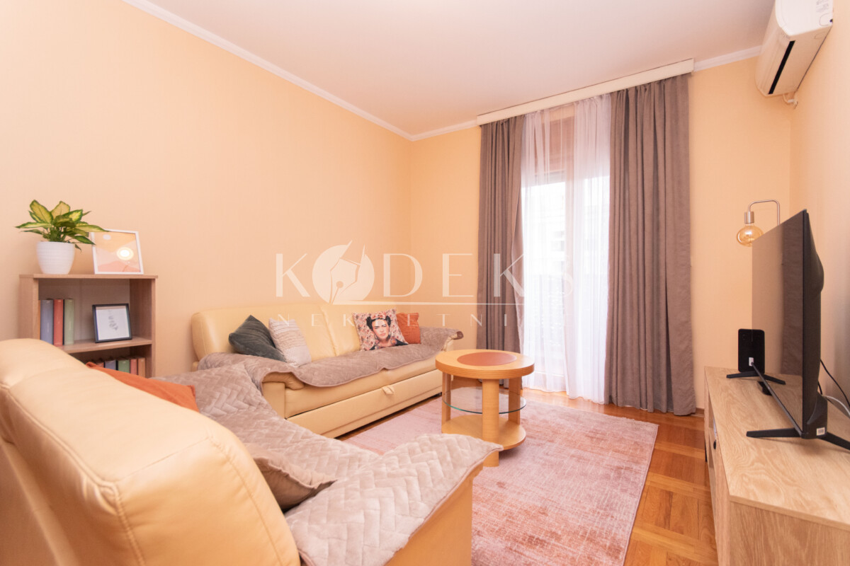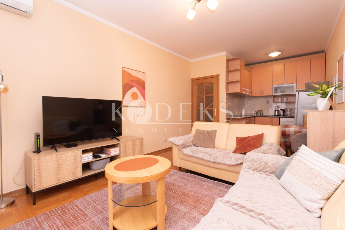 A furnished one-bedroom apartment is for rent located on the third floor of the Zetagradnja residential building in the Preko Morače neighborhood.