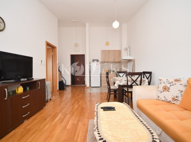 A furnished one-room apartment is for rent located on the sixth (last) floor of a residential building across the street from the Star fitness gym at Stari aerodrome.