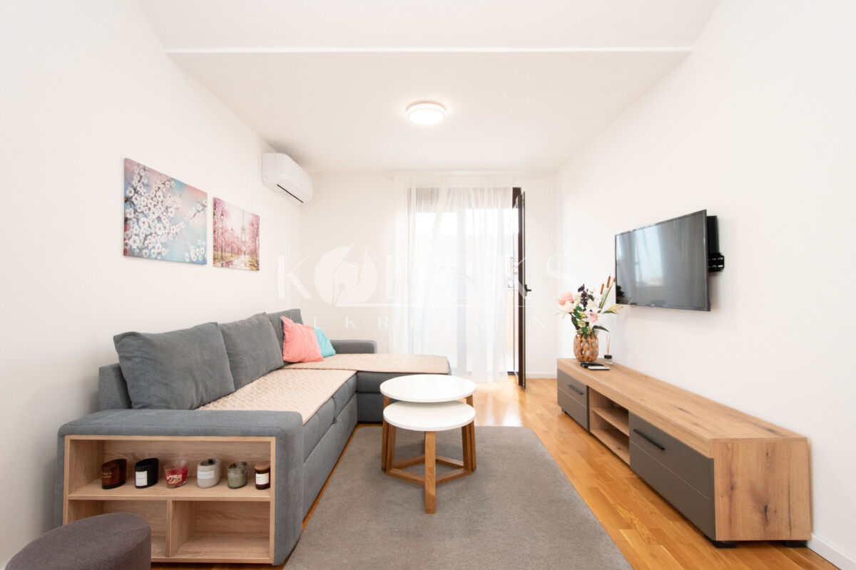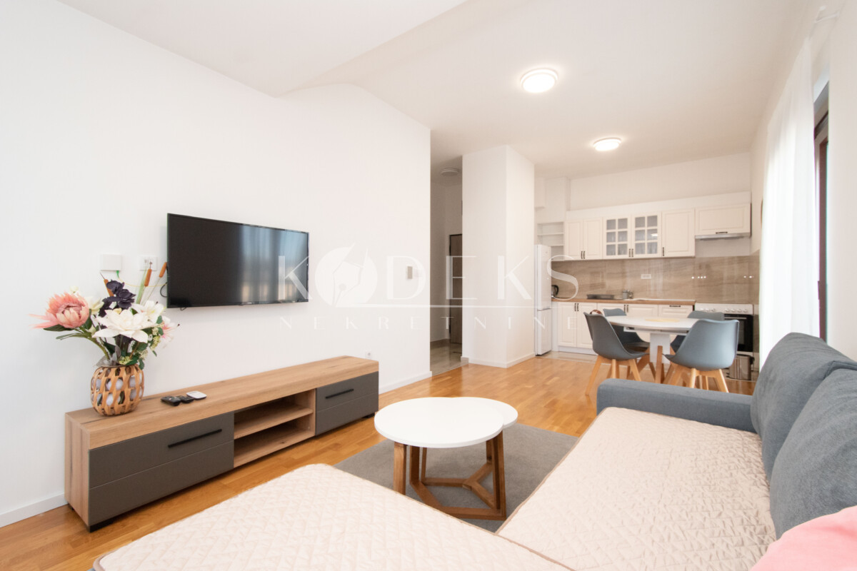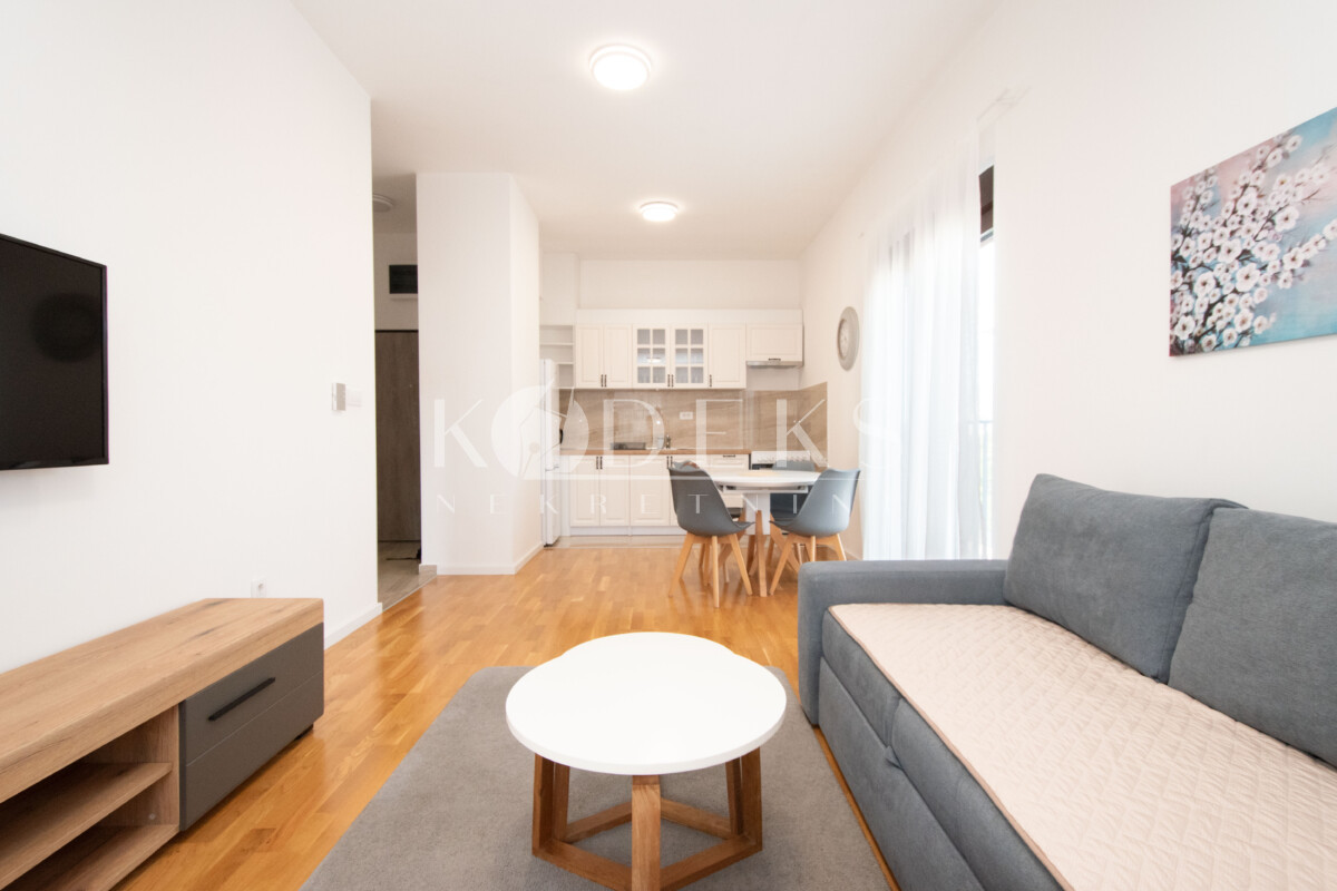 A beautifully furnished one-bedroom apartment is for rent located on the third (top) floor of a building in the Garden complex in Zabjelo.