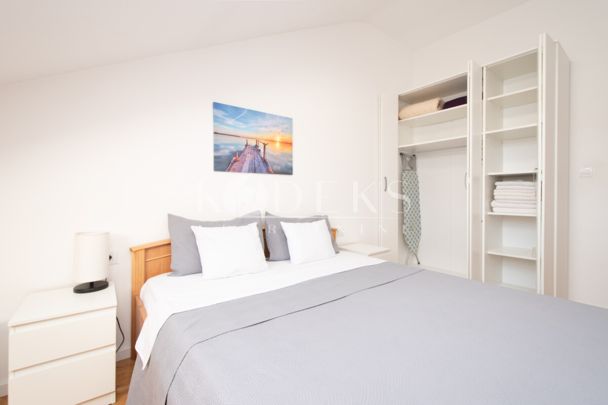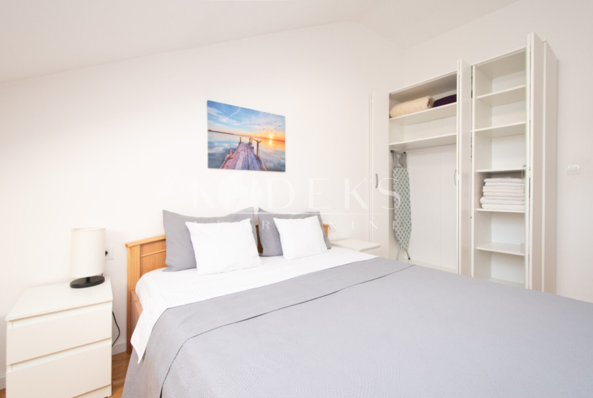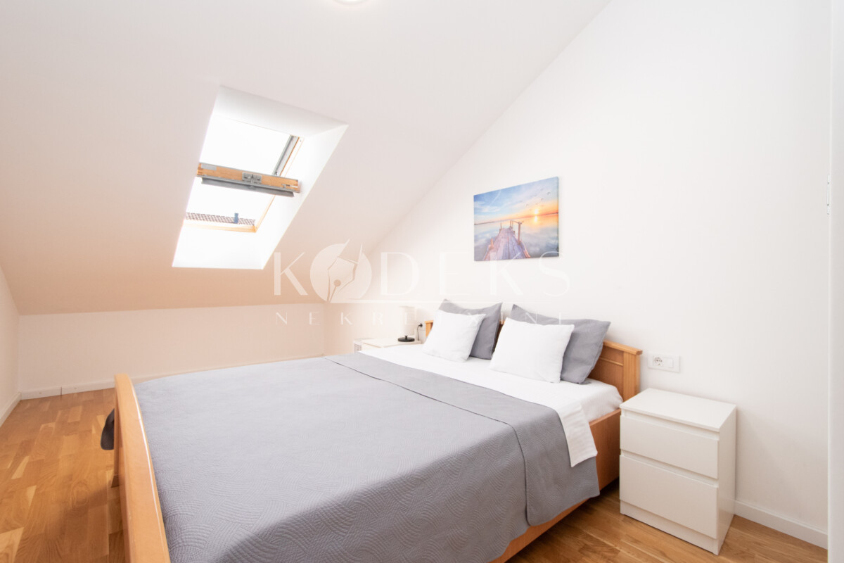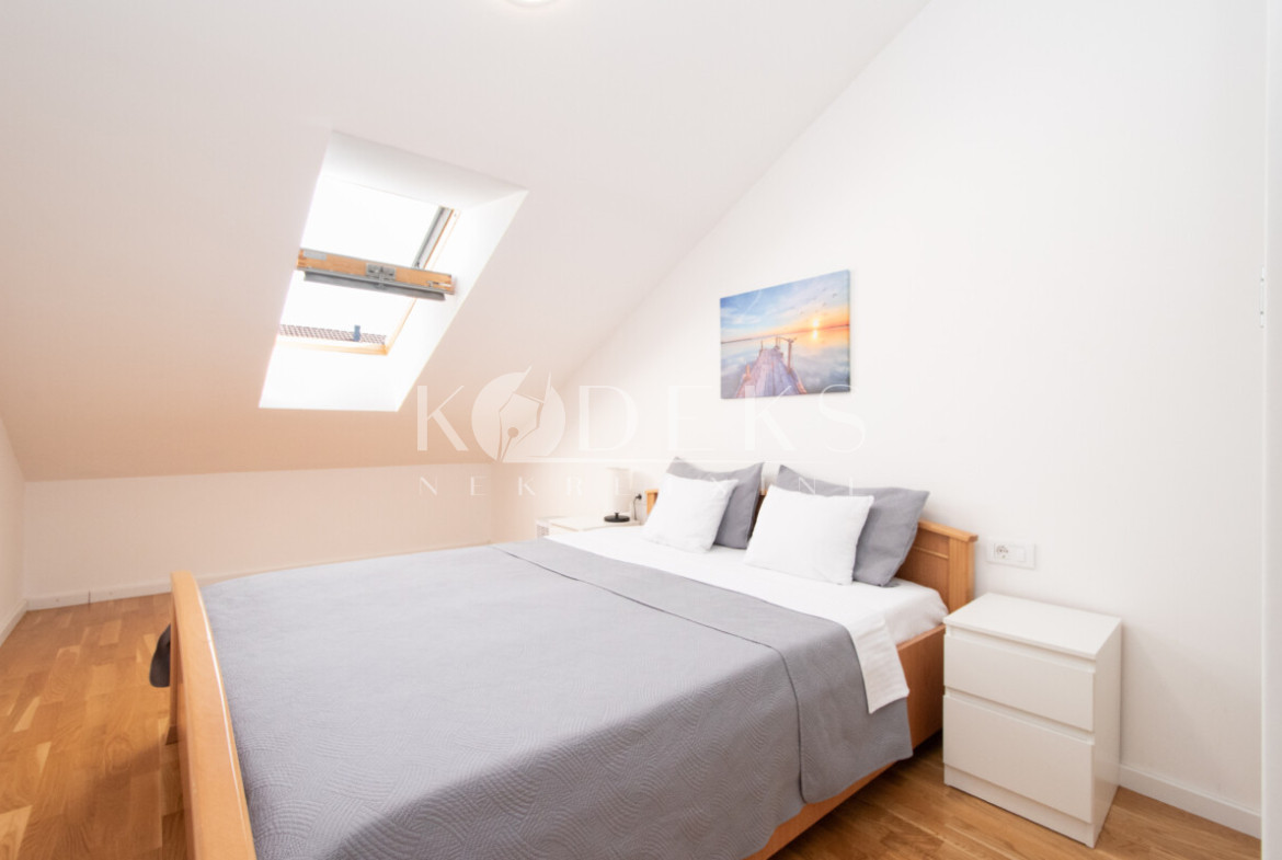 A beautifully furnished one-bedroom apartment is for rent located on the third (top) floor of a building in the Garden complex in Zabjelo.