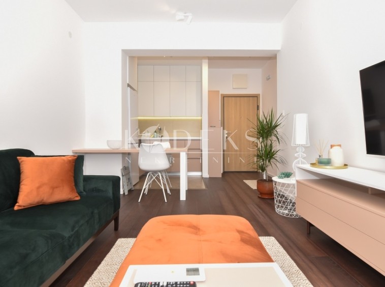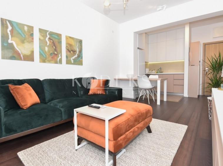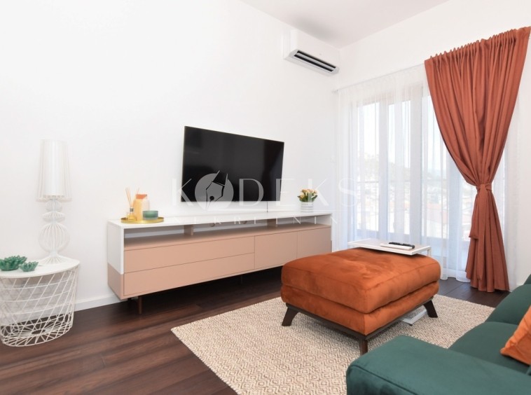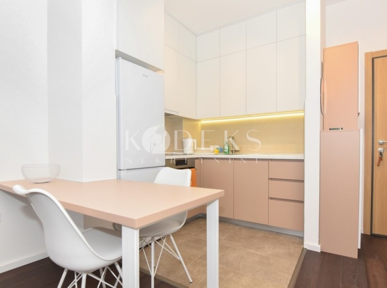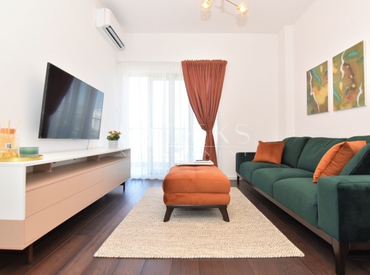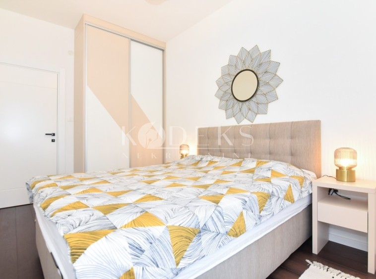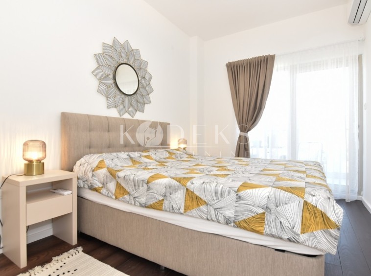 A luxuriously furnished one-bedroom apartment is for rent located on the sixth (not the last) floor of the Vezir residential building in Momišići.