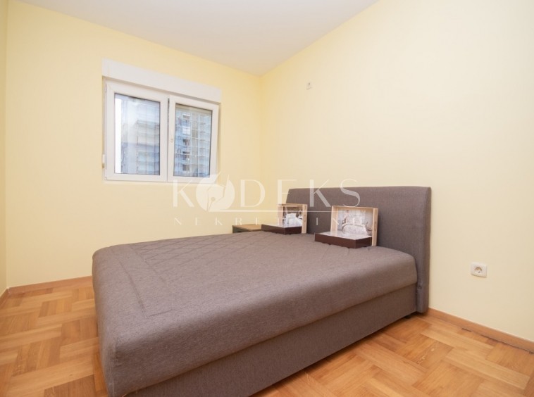 A beautifully furnished one-bedroom apartment is for rent located on the fourth floor of the Zetagradnja residential building on 4. jula street in Zabjelo.