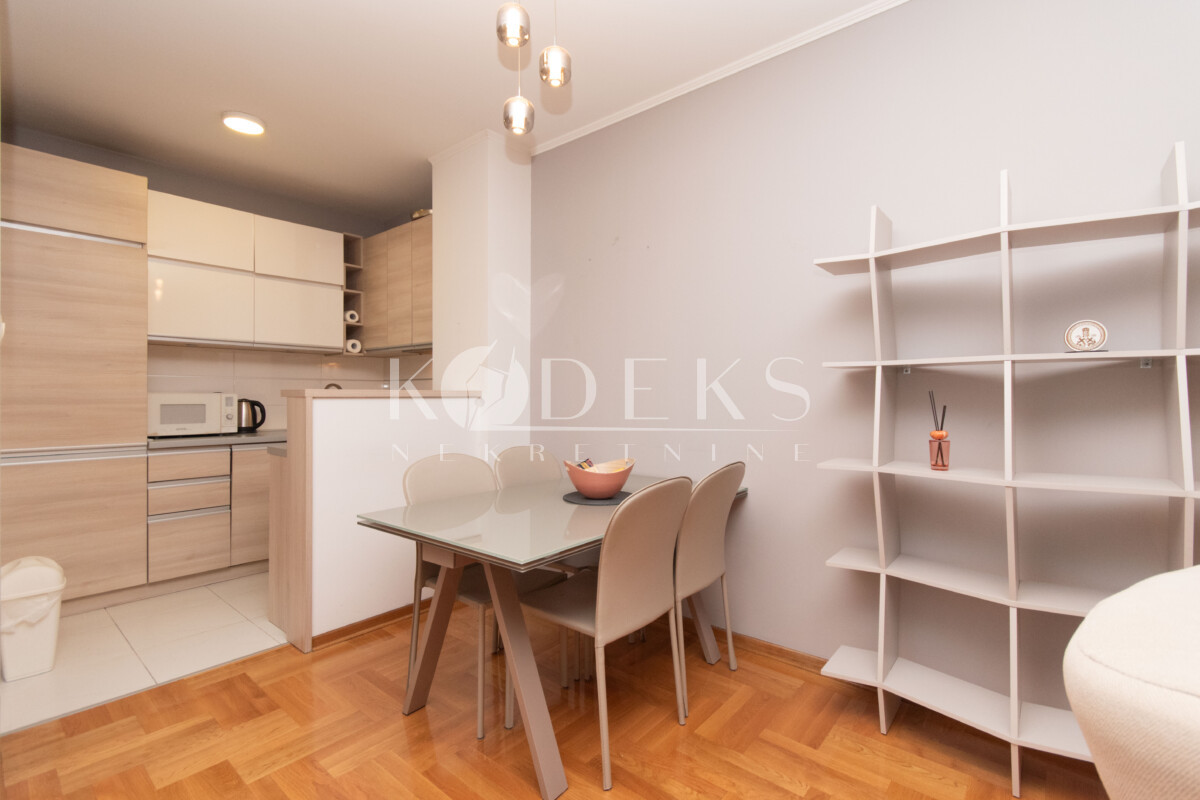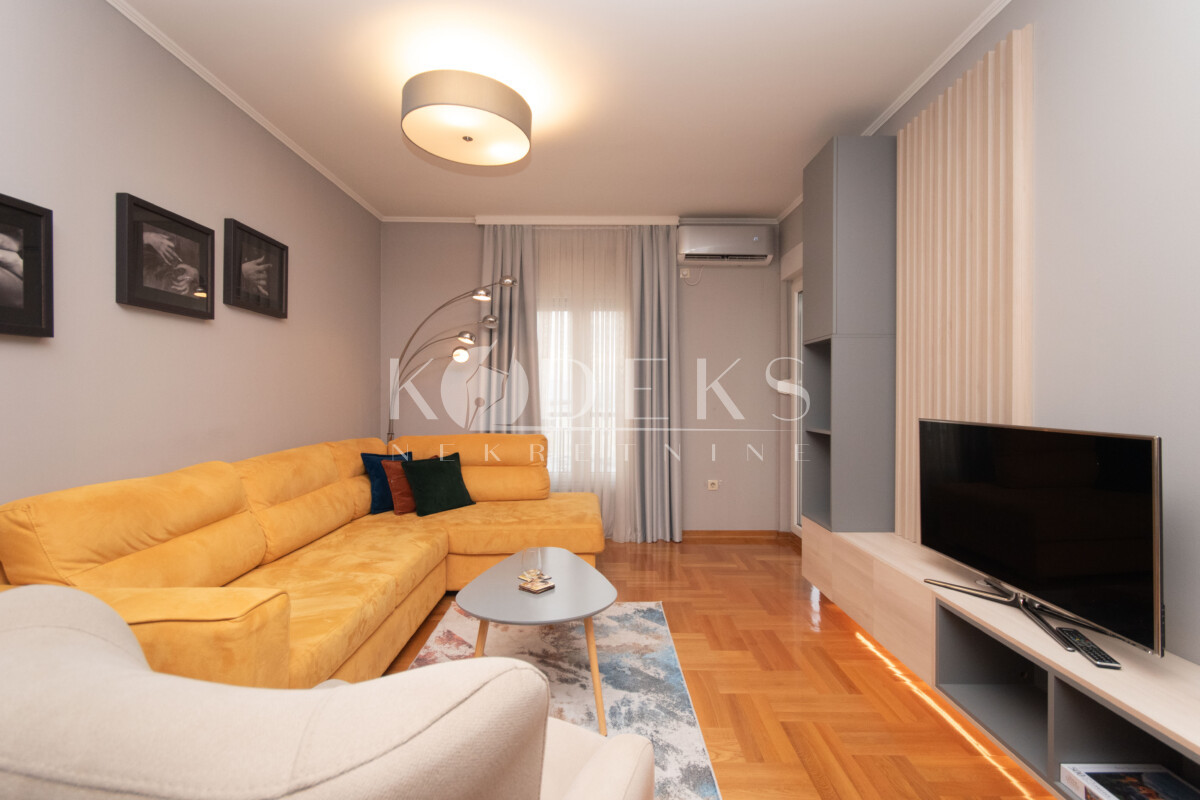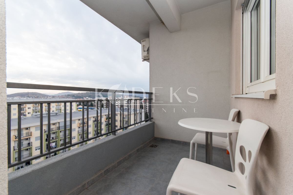 A beautifully furnished one-bedroom apartment is for rent located on the eighth floor (last) of the Zetagradnja residential building on 4. jula street in Zabjelo.