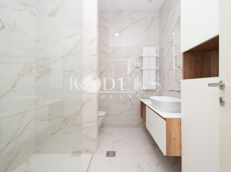 The apartment has a multisplit system, electric roller blinds, underfloor heating in each bathroom, all things are new and unused.