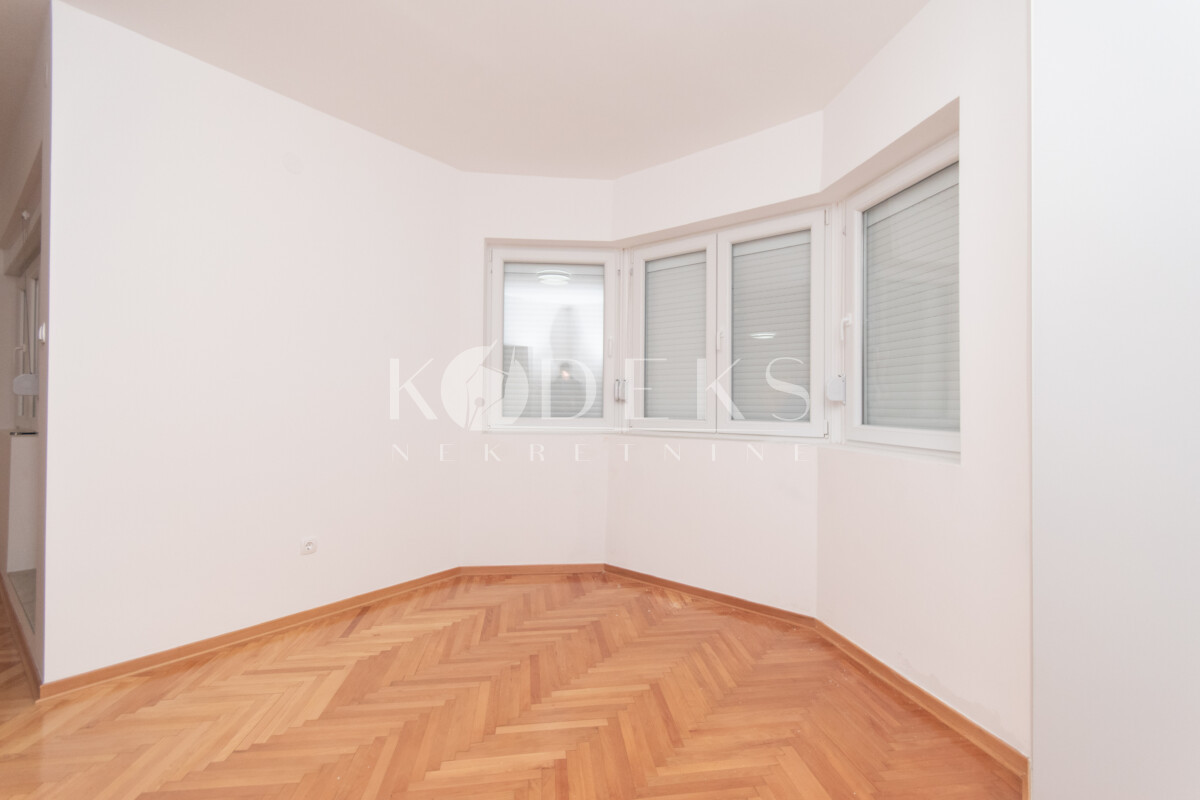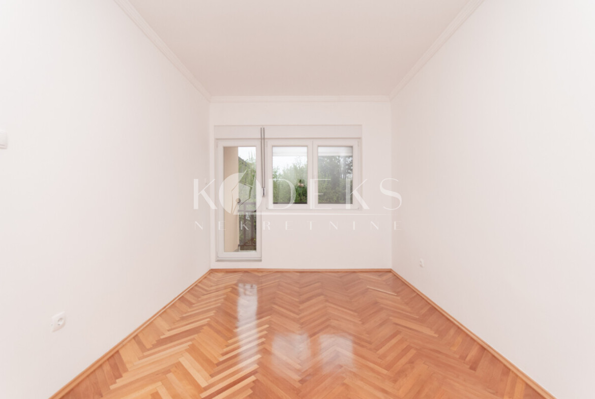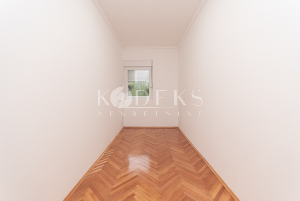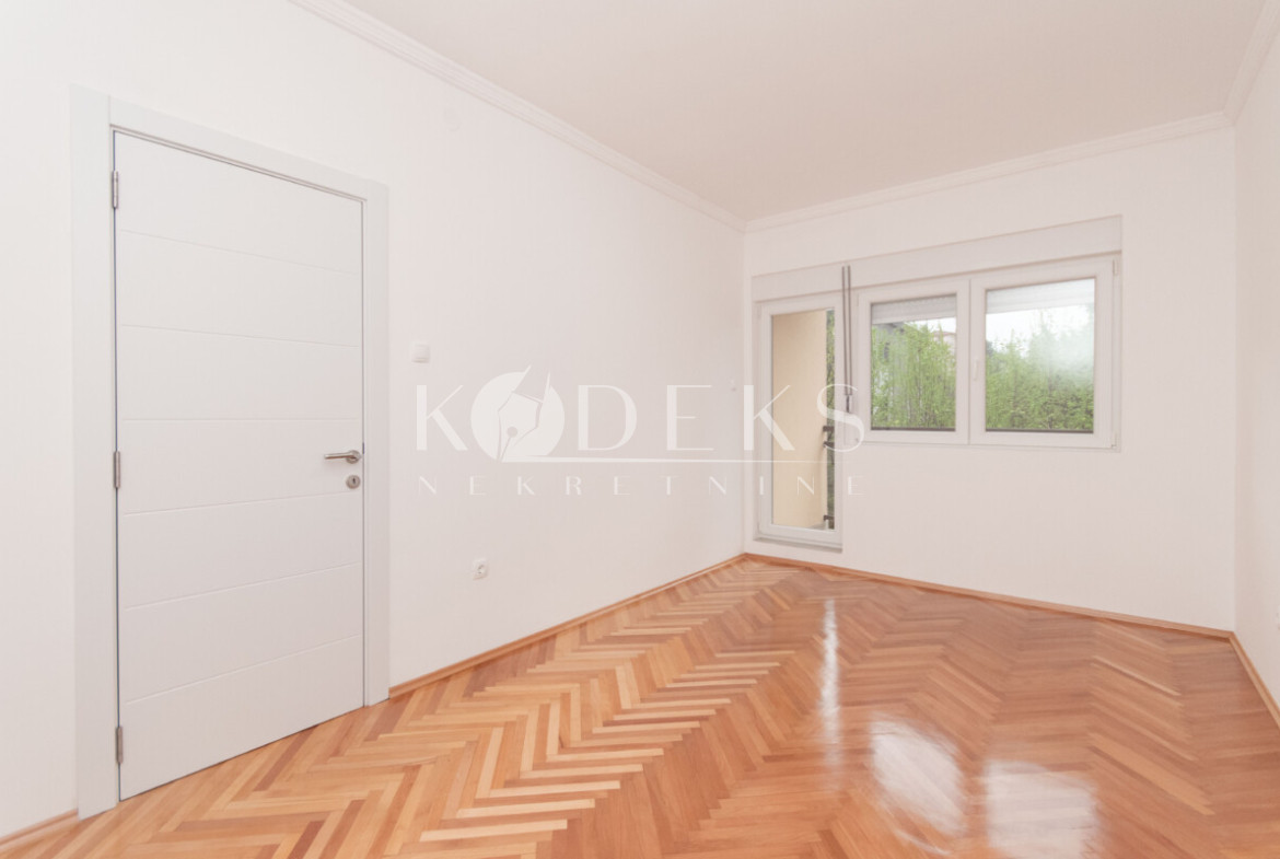 An unfurnished three-bedroom apartment is for rent located on the first floor of a residential building in the Zelenika neighborhood.