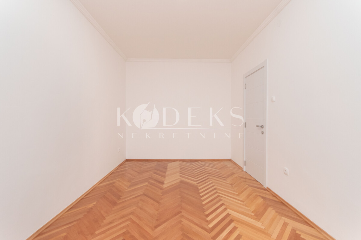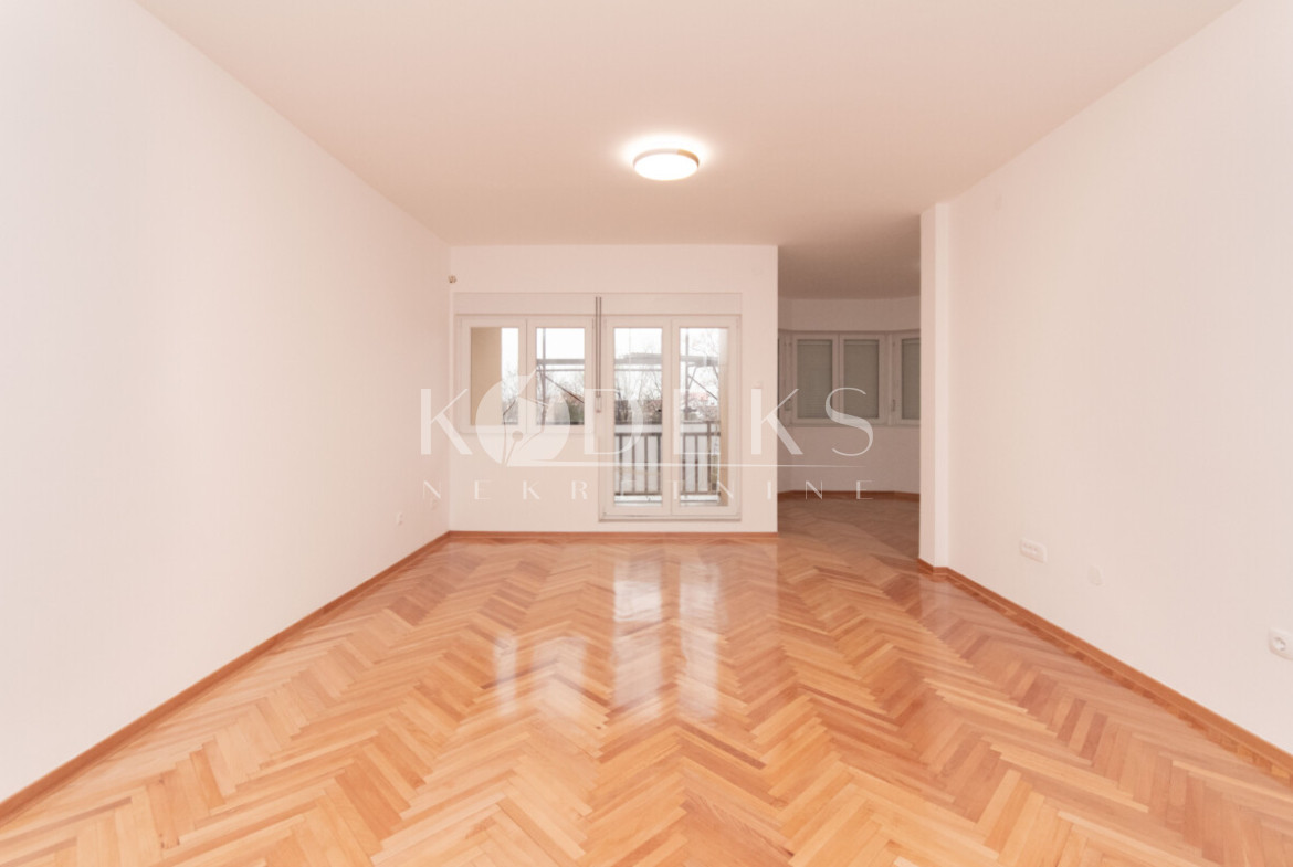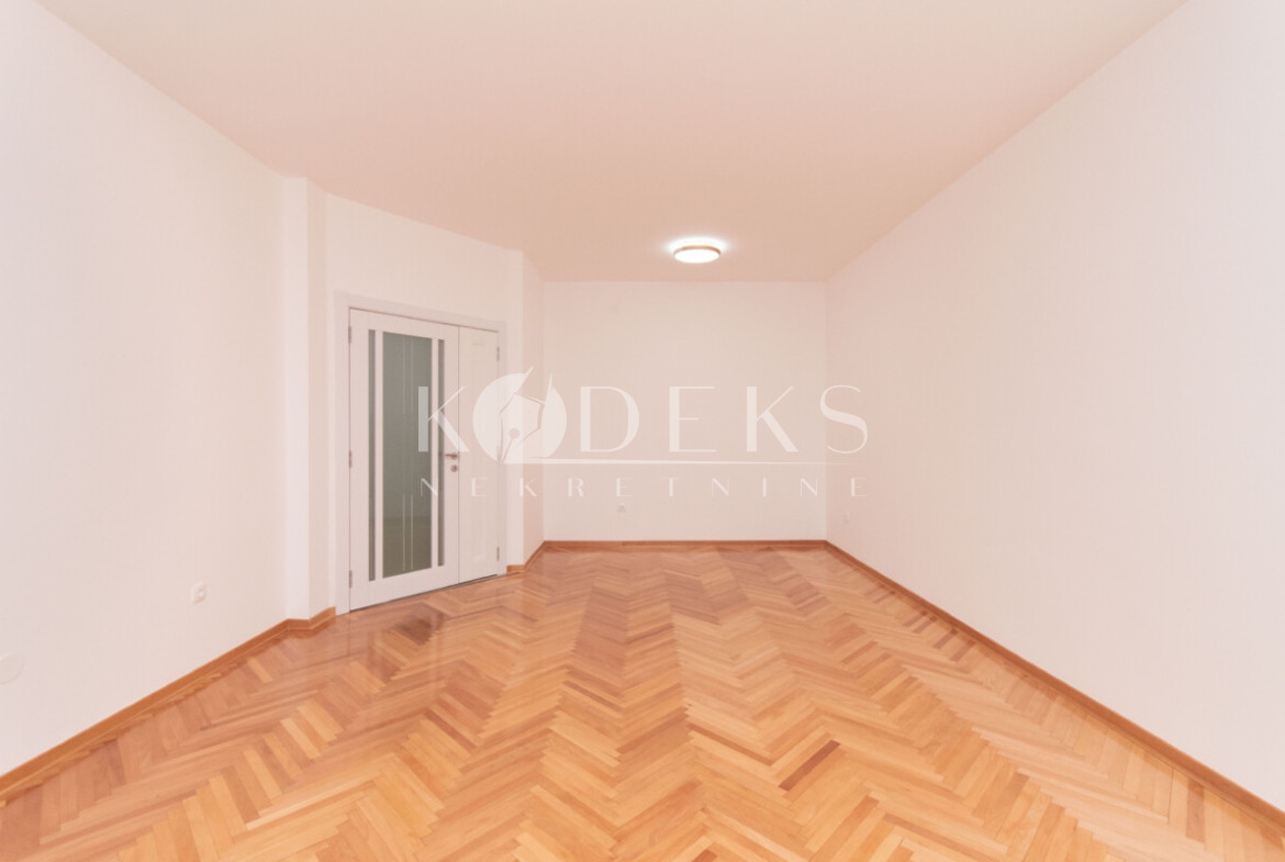 An unfurnished three-bedroom apartment is for rent located on the first floor of a residential building in the Zelenika neighborhood.
