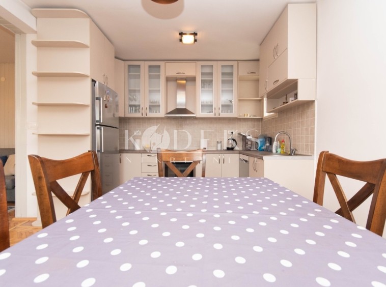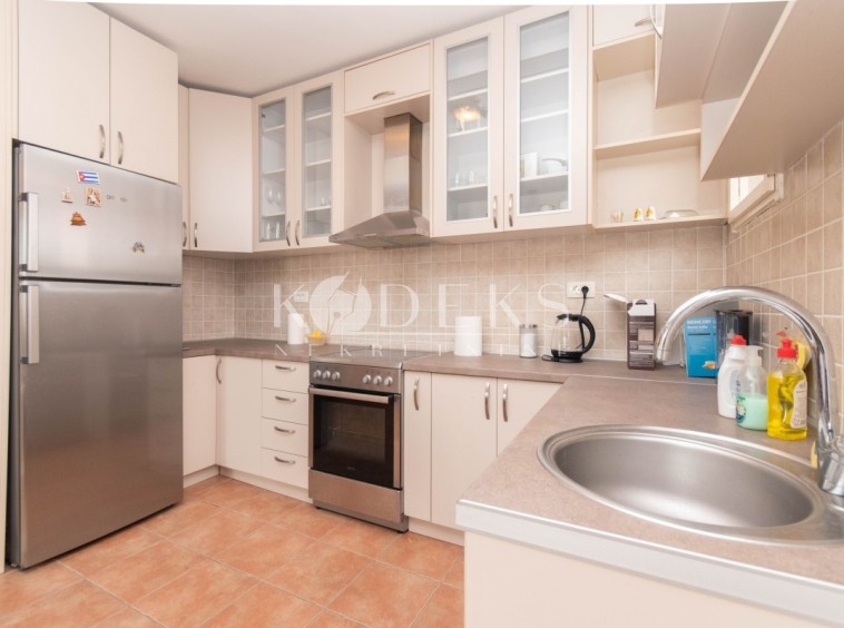 Struktura: Dnevna soba koja je povezana sa kuhinjom i trpezarijom i ima izlaz na terasu, dvije spavaće sobe od kojih jedna ima izlaz na svoju terasu, ulazni hodnik, ostava i kupatilo.