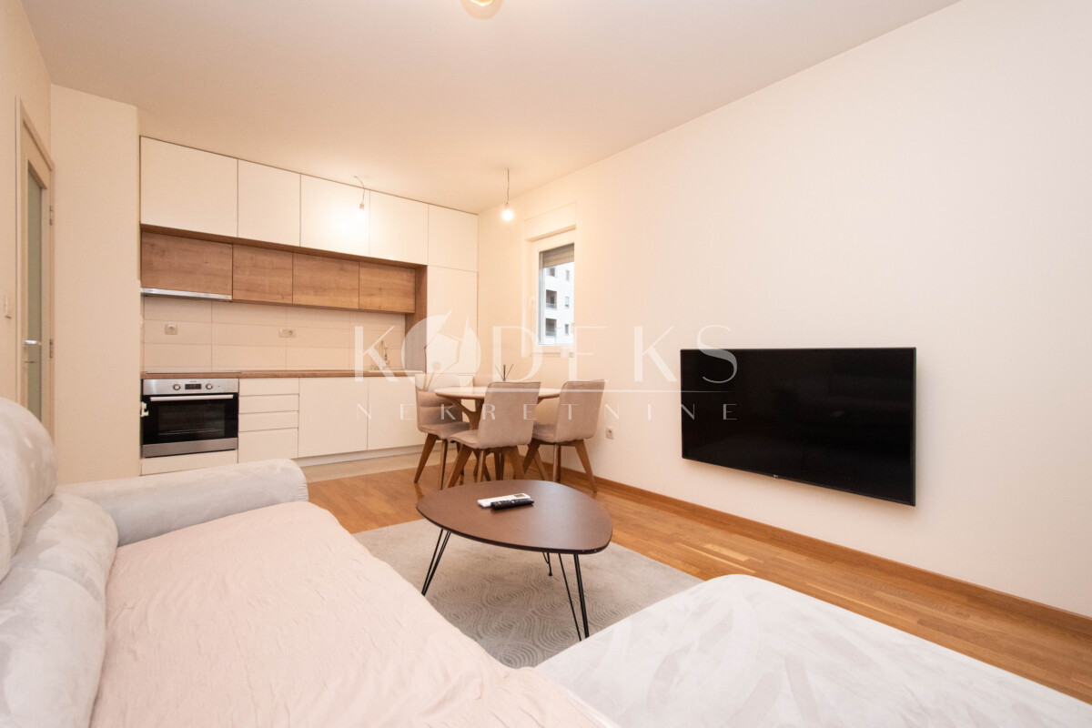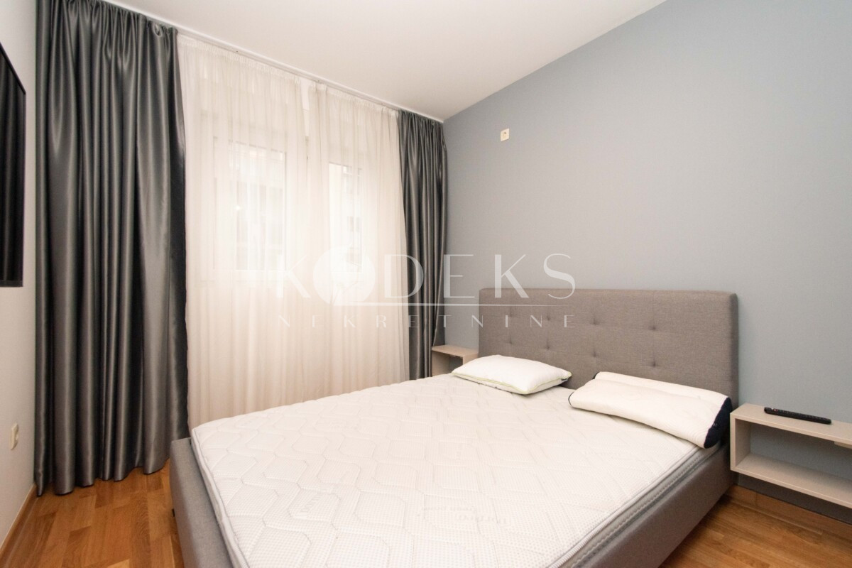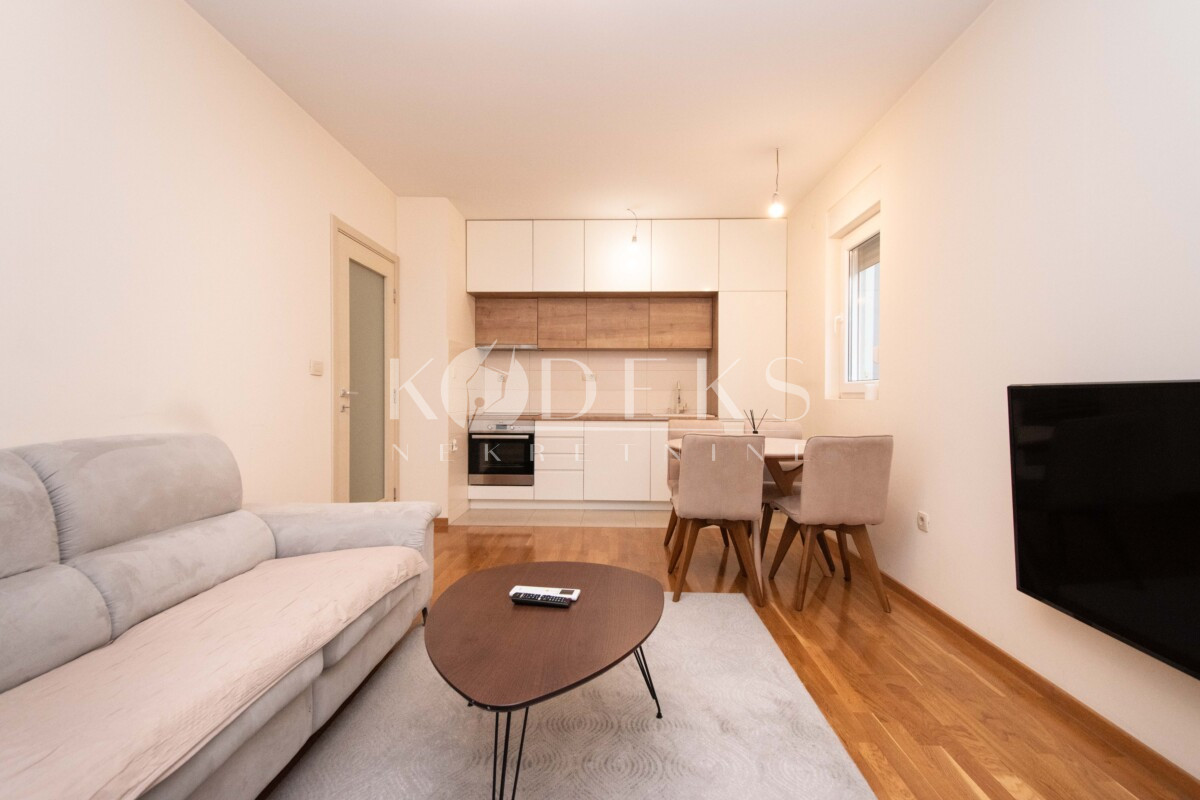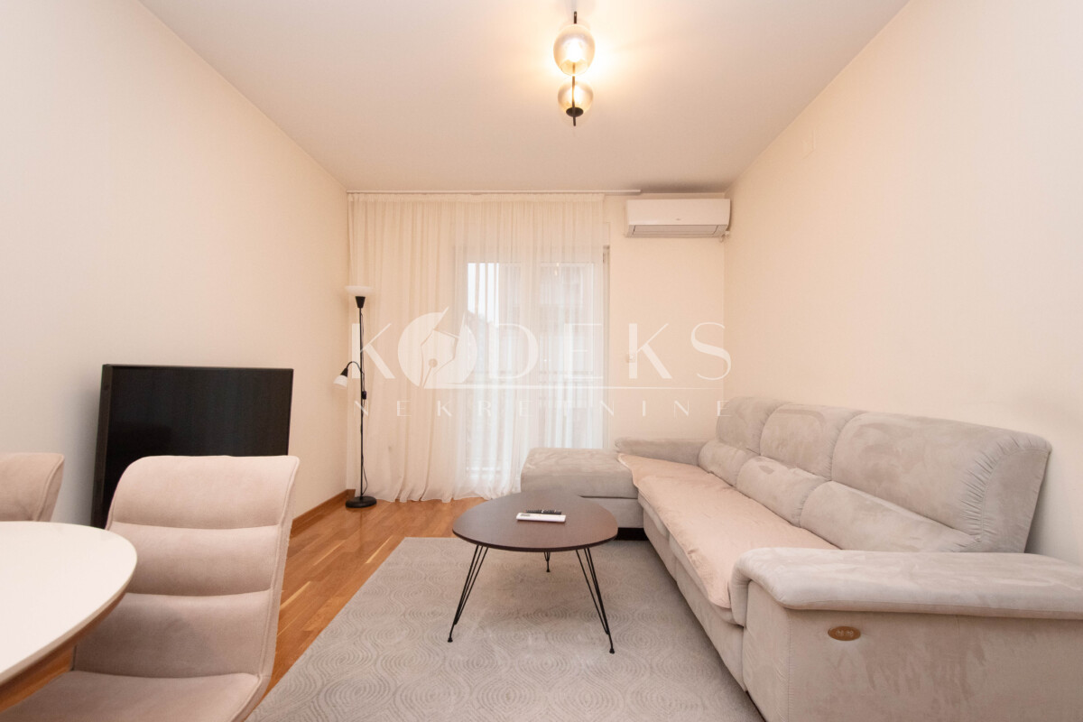 Izdaje se lijepo namješten dvosoban stan smješten na prvom spratu stambene zgrade zetagradnje prekoputa Multikoma na Zabjelu.