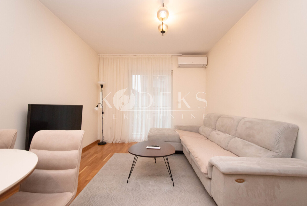 Izdaje se lijepo namješten dvosoban stan smješten na prvom spratu stambene zgrade zetagradnje prekoputa Multikoma na Zabjelu.