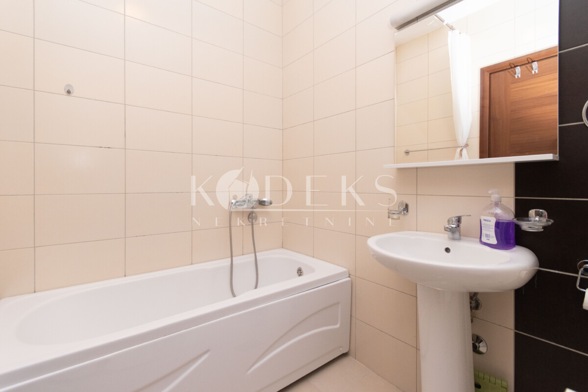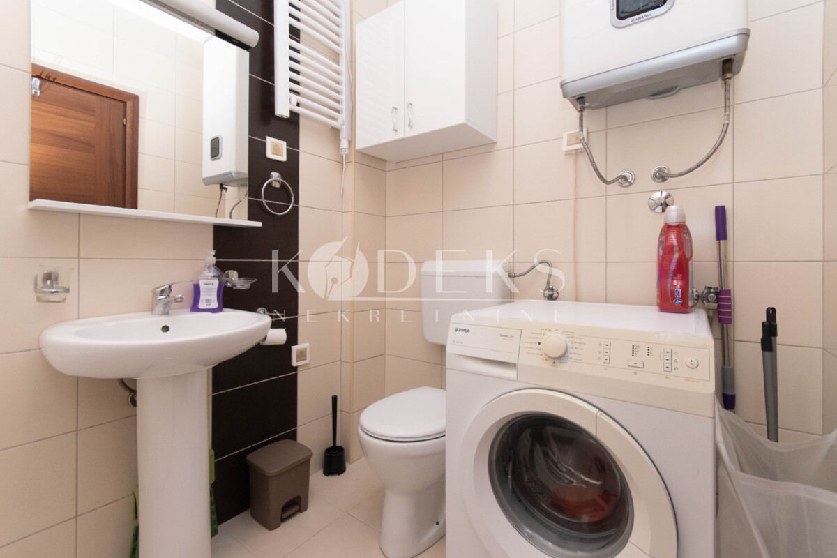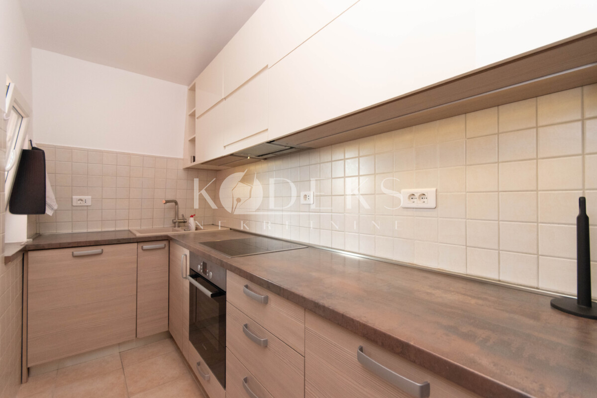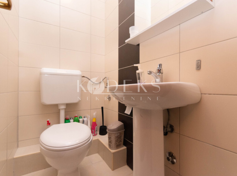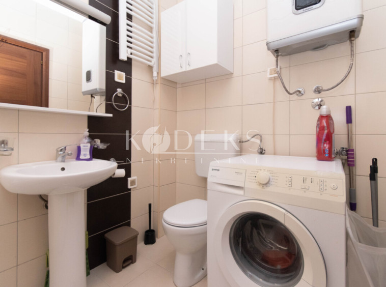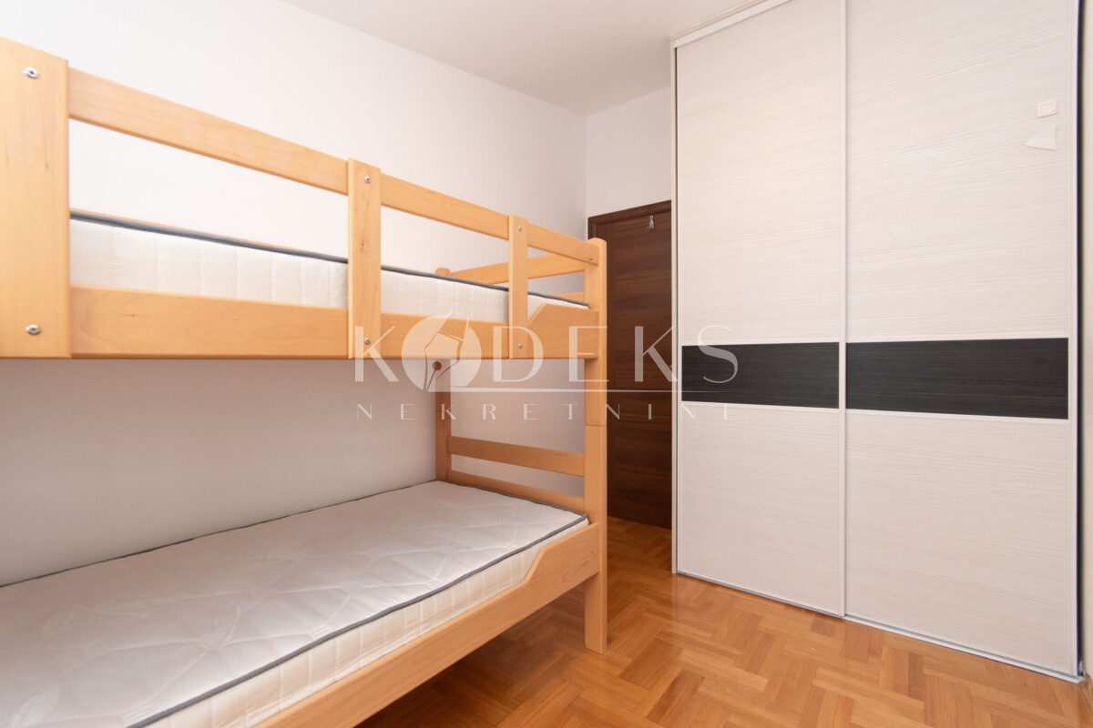 Struktura: Dnevna soba koja je povezana sa kuhinjom i trpezarijom i ima izlaz na veoma komfornu terasu, dvije spavaće sobe, ulazni hodnik, predsoblje, kupatilo i toalet.