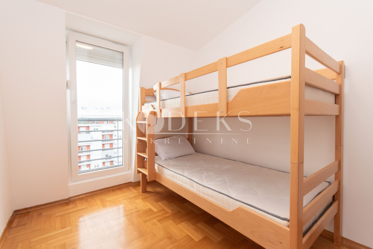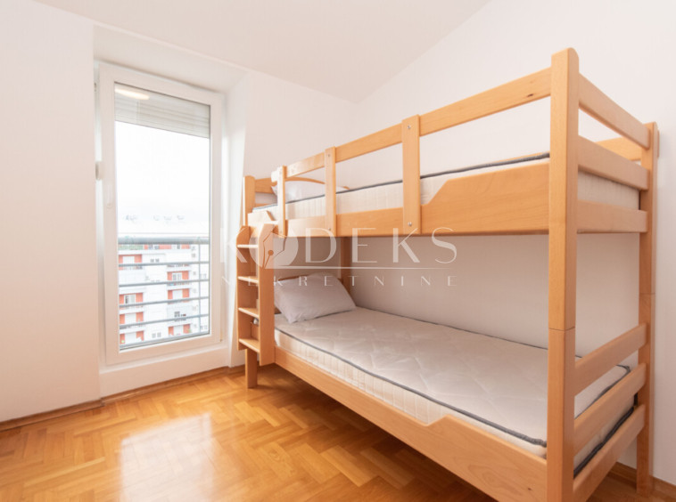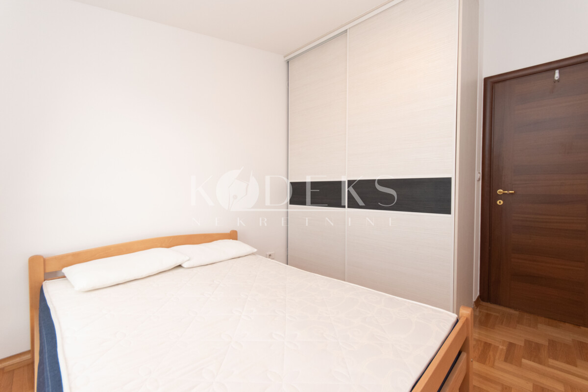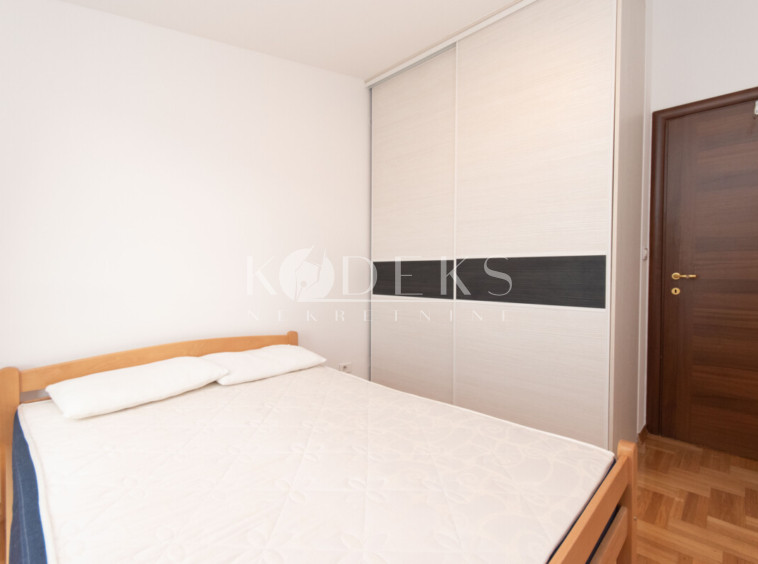 Izdaje se lijepo namješten dvosoban stan smješten na šestom spratu (posljednjem) stambene zgrade na Starom aerodromu.