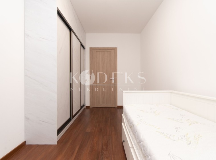 Izdaje se namješten dvosoban stan smješten na sedmom posljednjem spratu stambene zgrade u Master kvartu.