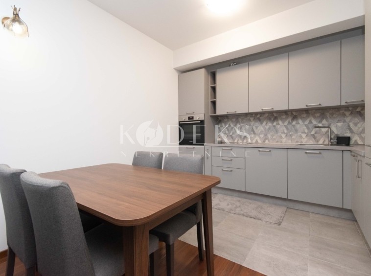 Struktura: Dnevna soba koja je povezana sa trpezarijom i kuhinjom i ima izlaz na veoma komfornu terasu, dvije spavaće sobe, veliko kupatilo, toalet i ulazni hodnik.