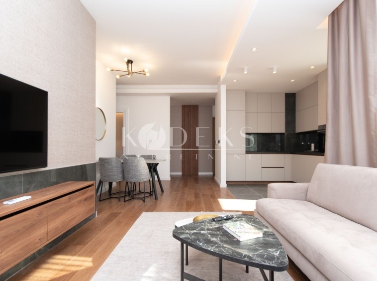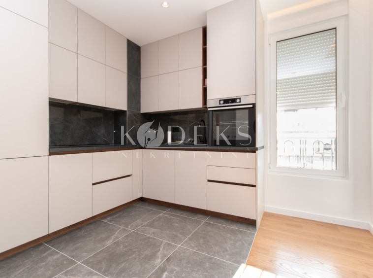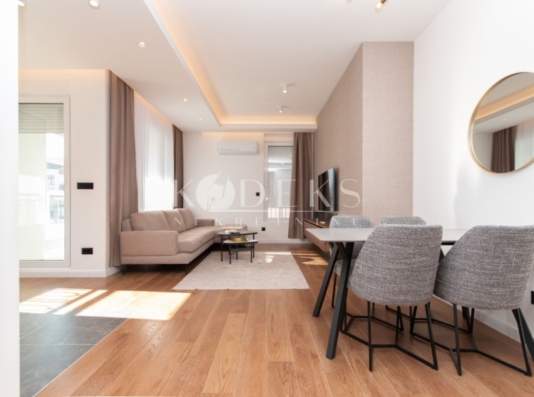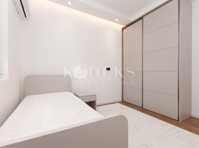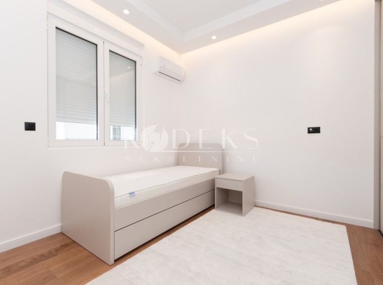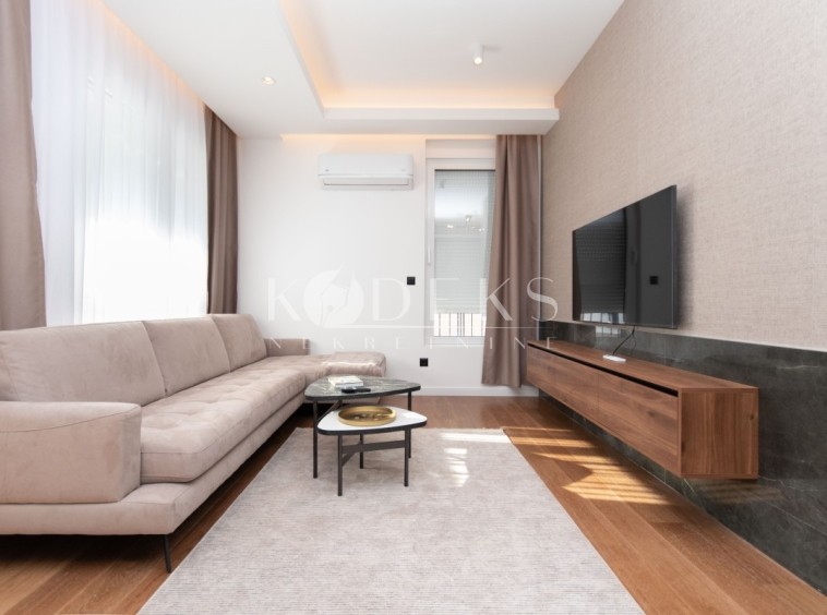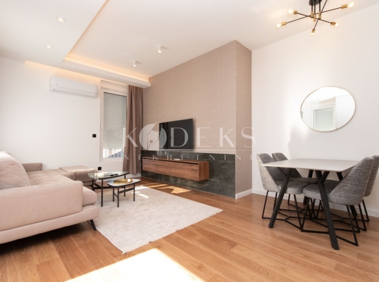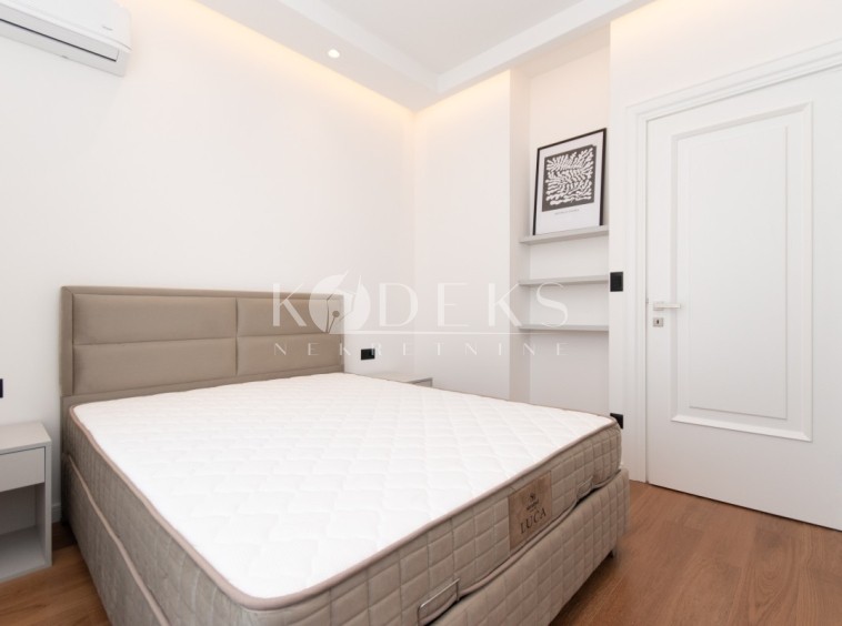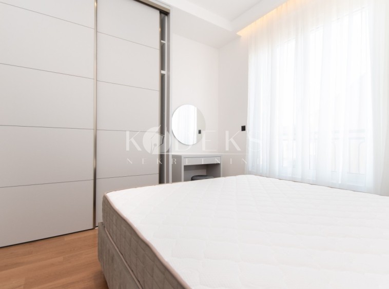 Izdaje se luksuzno opremljen  dvosoban stan smješten na prvom spratu luksuzne zgrade u Bloku 9.