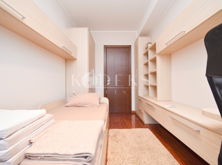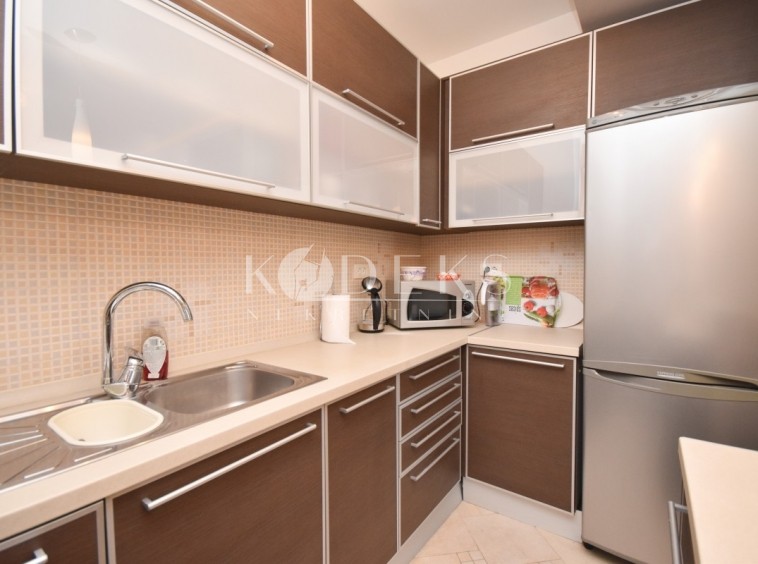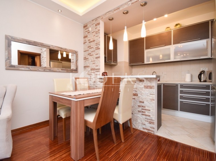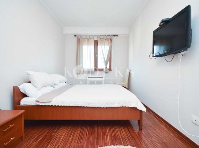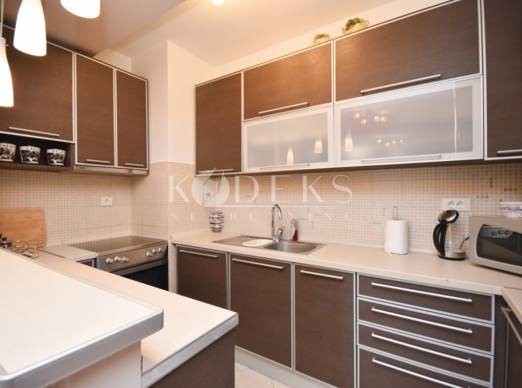 Struktura: Dnevna soba koja je povezana sa trpezarijom i kuhinjom i ima izlaz na veoma komfornu terasu, dvije spavaće sobe, ulazni hodnik,kupatilo i vešeraj.