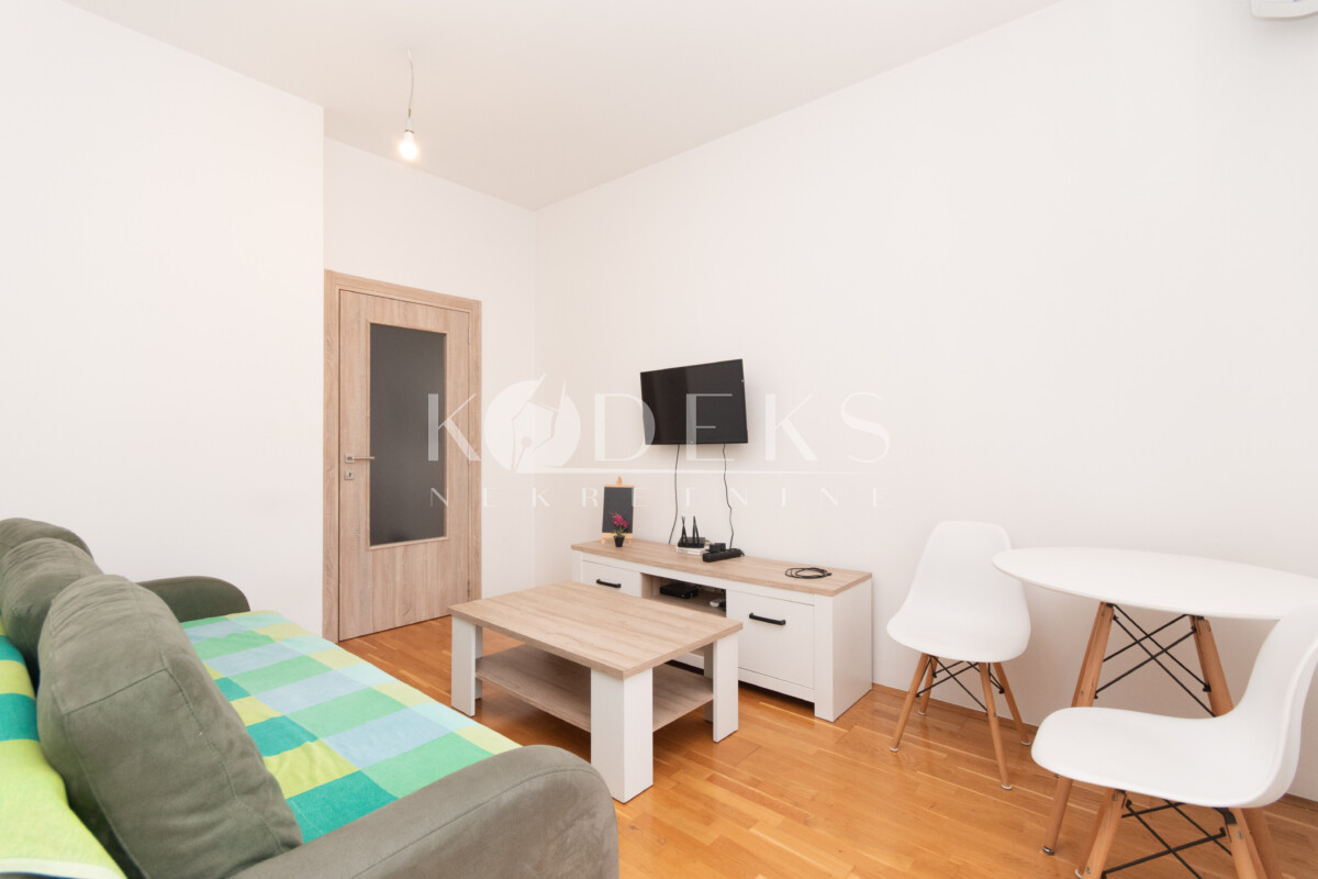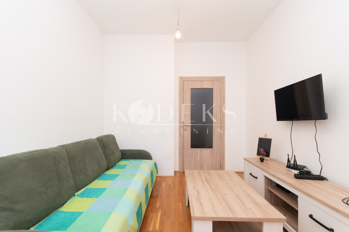 Struktura: Dnevna soba koja je povezana sa trpezarijom i kuhinjom i ima izlaz na terasu, ulazni hodnik i kupatilo.