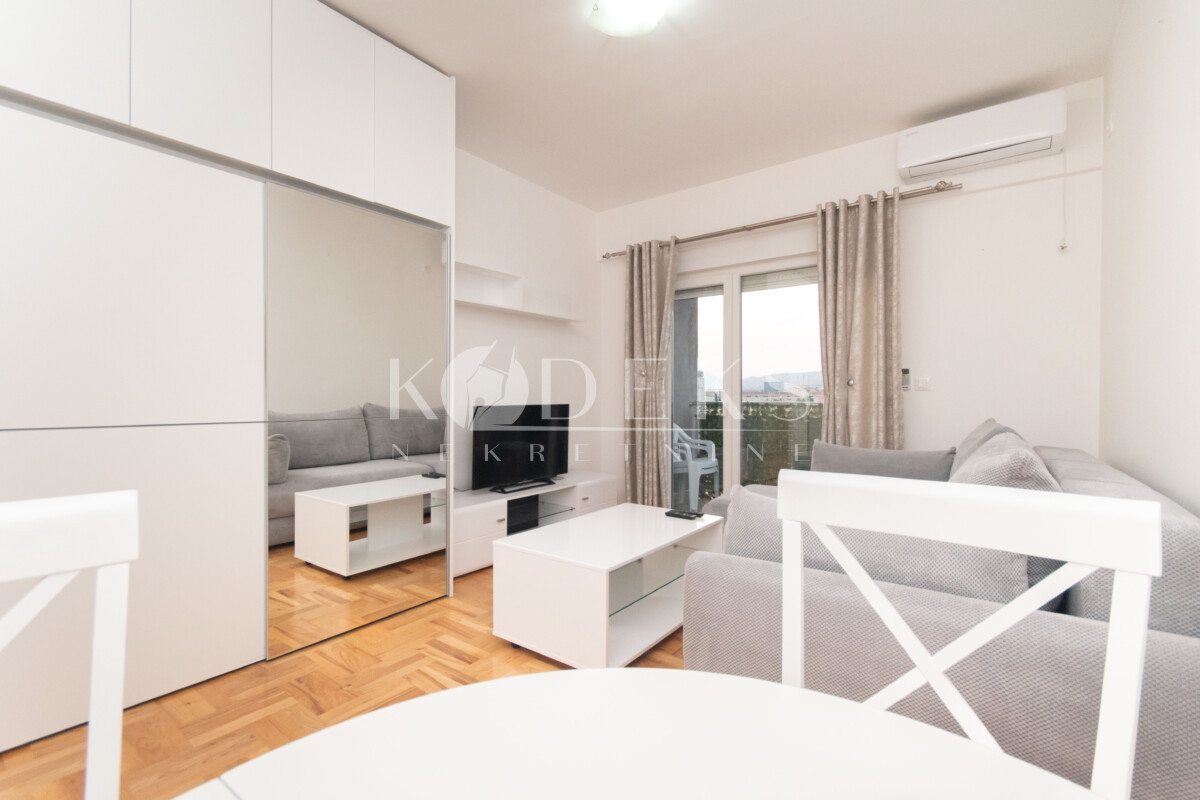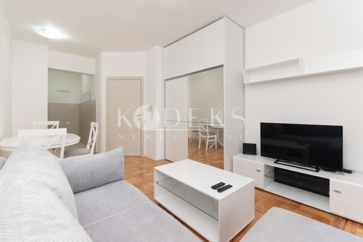 Struktura: Dnevna soba sa trpezarijom i kuhinjom otvorenog tipa, koja ima izlaz na terasu, ulazni hodnik i kupatilo.