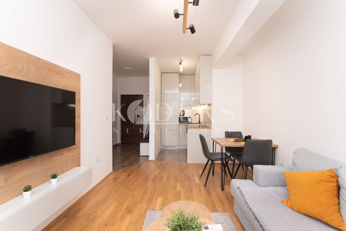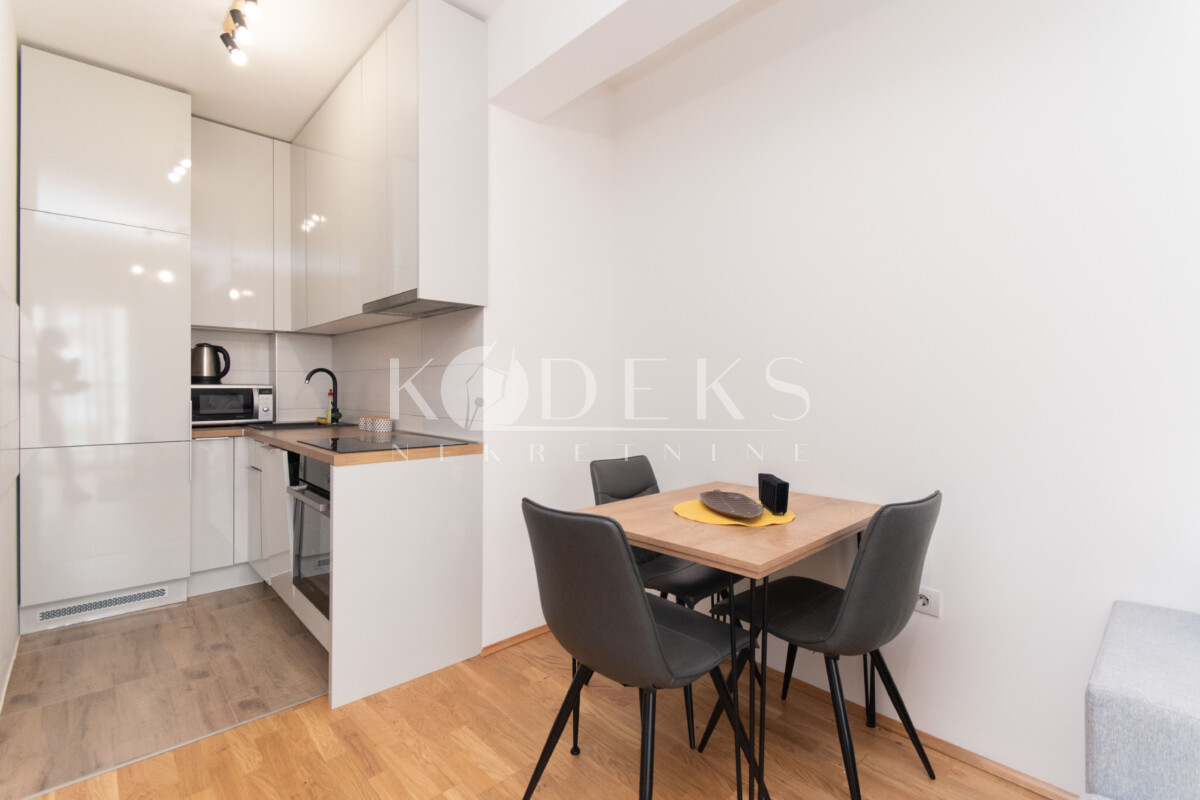 Struktura: Dnevna soba koja je povezana sa kuhinjom i trpezarijom, spavaća soba, ulazni hodnik otvorenog tipa i kupatilo. Stan ne posjeduje terasu.
