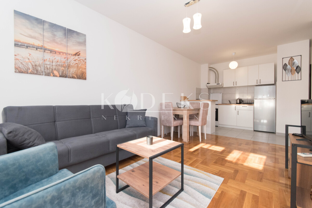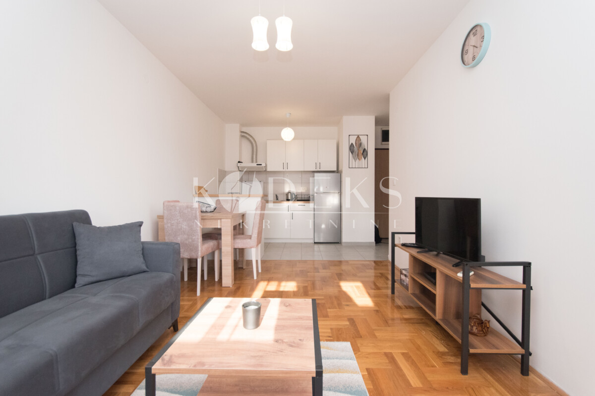 Struktura: Dnevna soba koja je povezana sa trpezarijom i kuhinjom i ima izlaz na terasu, spavaća soba koja takođe ima izlaz na terasu, ulazni hodnik i kupatilo.