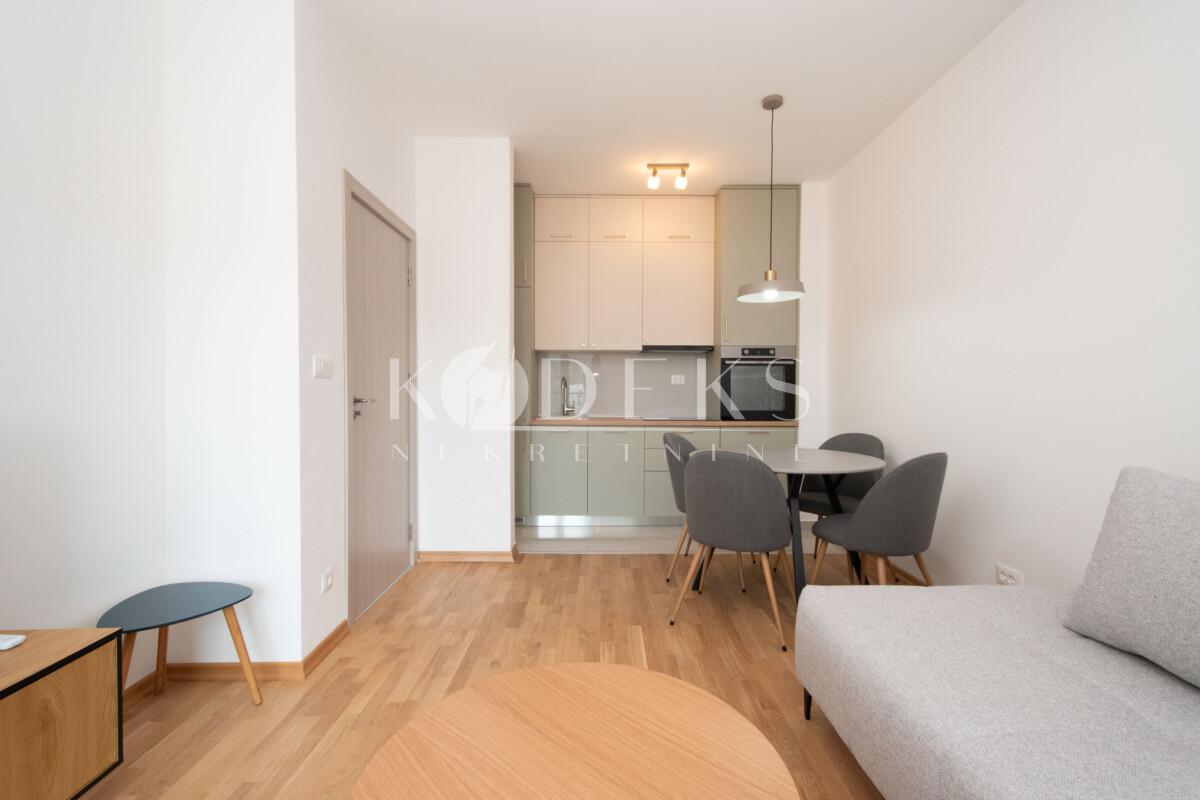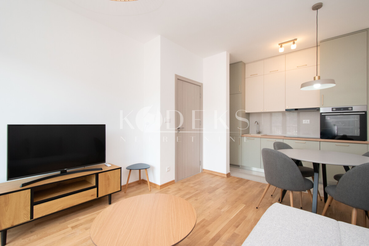 Struktura: Dnevna soba koja ima izlaz na terasu, trpezarija i kuhinja otvorenog tipa, spavaća soba sa izlazom na terasu, ulazni hodnik i kupatilo.