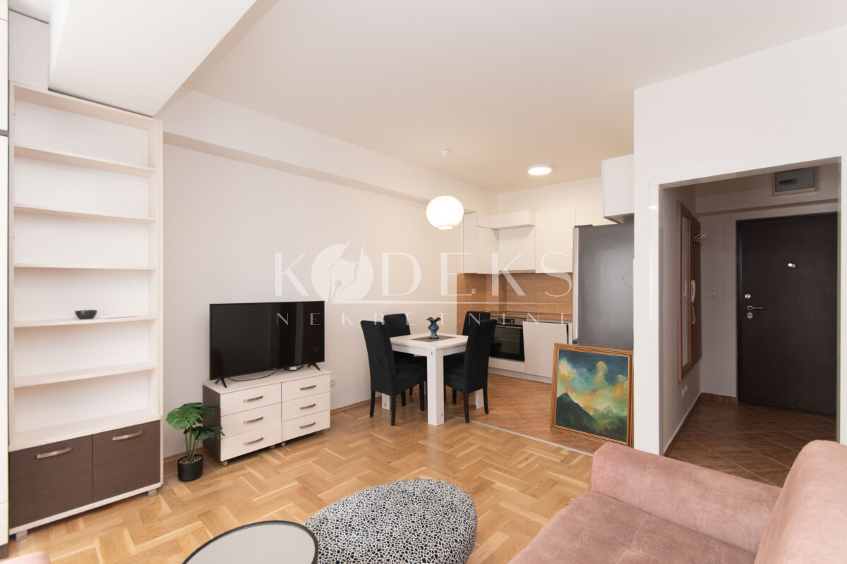 Izdaje se lijepo namješten jednosoban stan smješten na trećem spratu stambene zgrade u Bloku 9.