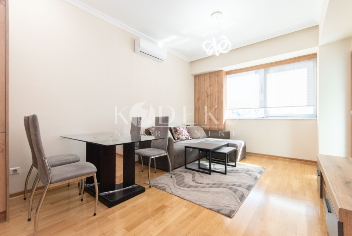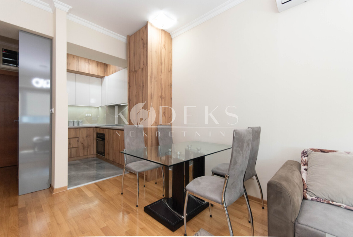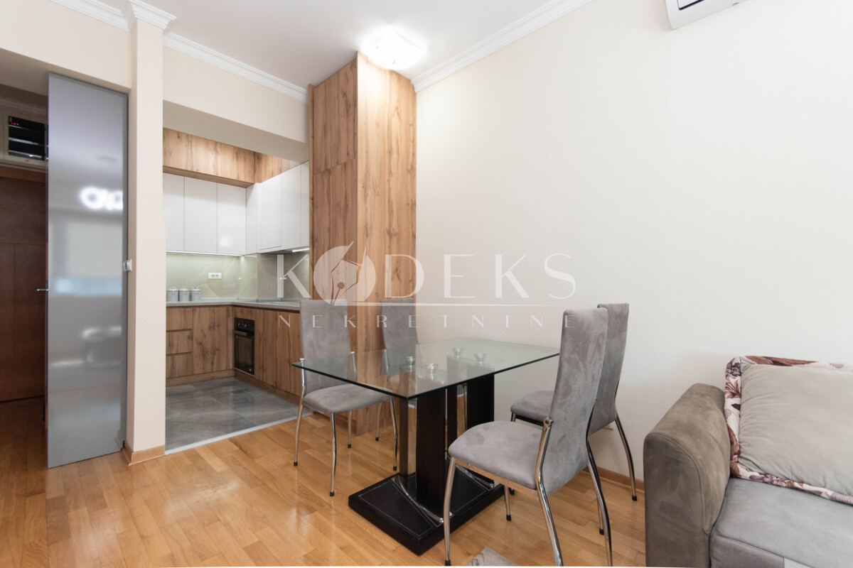 Izdaje se lijepo namješten jednosoban stan smješten na trećem spratu stambene zgrade Nikić u centru grada.