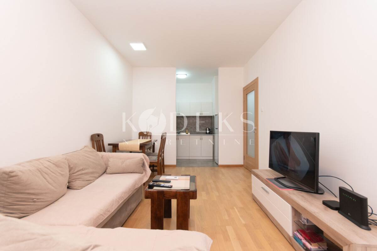 Struktura: Dnevna soba koja je povezana sa kuhinjom i trpezarijom i ima izlaz na terasu, spavaća soba koja takođe ima izlaz na terasu, ulazni hodnik i kupatilo.