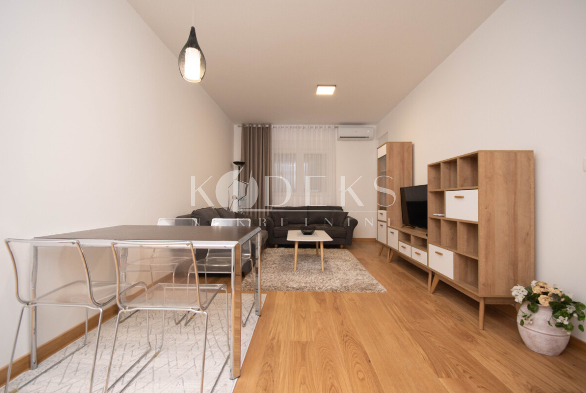 Izdaje se neuseljavan lux namješten jednosoban stan, smješten na trećem spratu stambene zgrade Kipsa u novom kvartu New city.