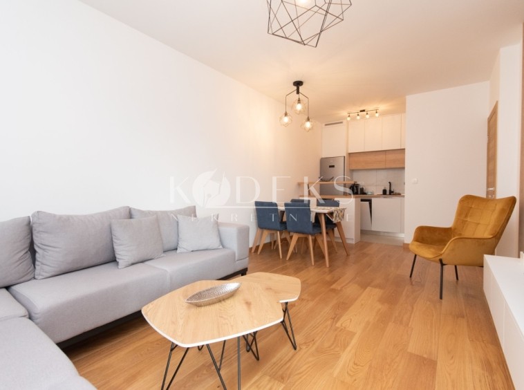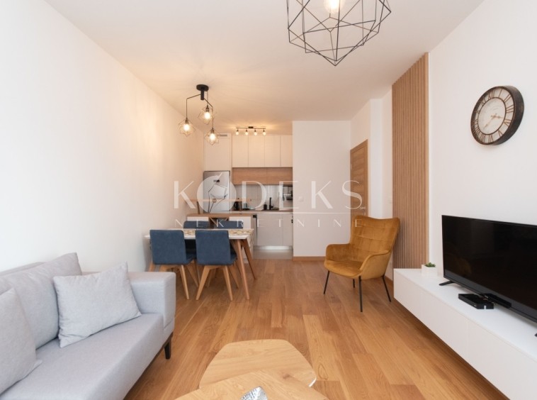 Izdaje se luksuzno namješten jednosoban stan smješten na trećem spratu zgrade Kipsa u kompleksu New city.