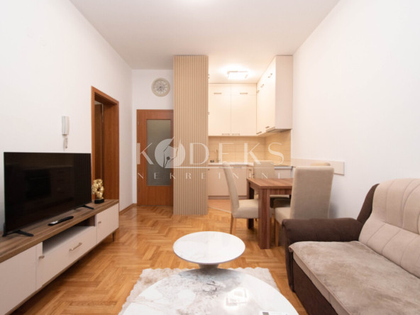 Izdaje se lijepo namješten jednosoban stan smješten na prvom spratu stambene zgrade Acton prekoputa Super voli marketa.