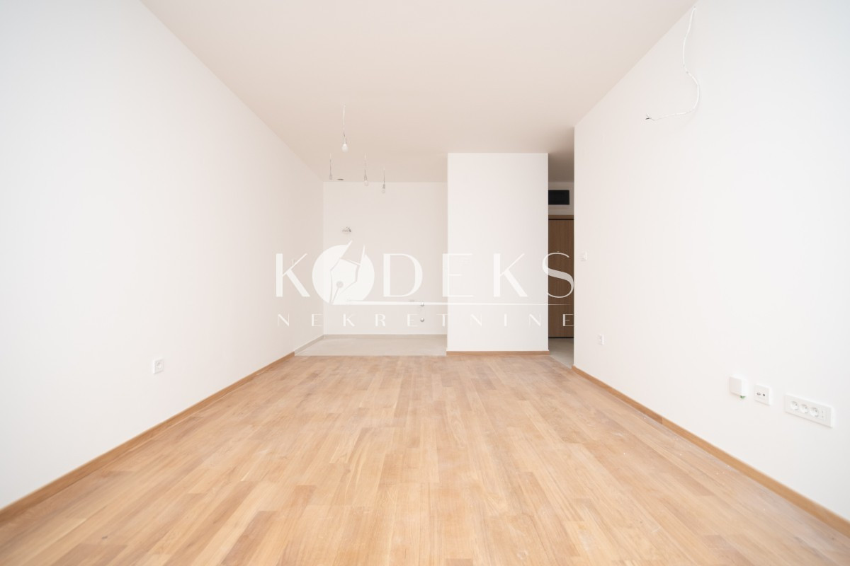 Struktura: Dnevna soba koja je povezana sa trpezarijom i kuhinjom i ima izlaz na terasu, spavaća soba koja takođe ima izlaz na terasu, ulazni hodnik i kupatilo.