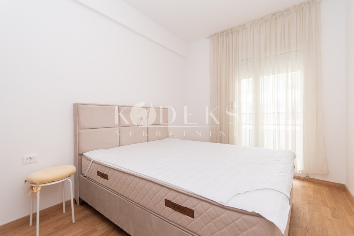 Izdaje se lijepo namješten jednosoban stan smješten na četvrtom spratu stambene zgrade kod Multikoma na Zabjelu.
