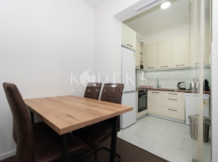Izdaje se lux namješten jednosoban stan smješten na prvom spratu zgrade Vezir u Momišićima.