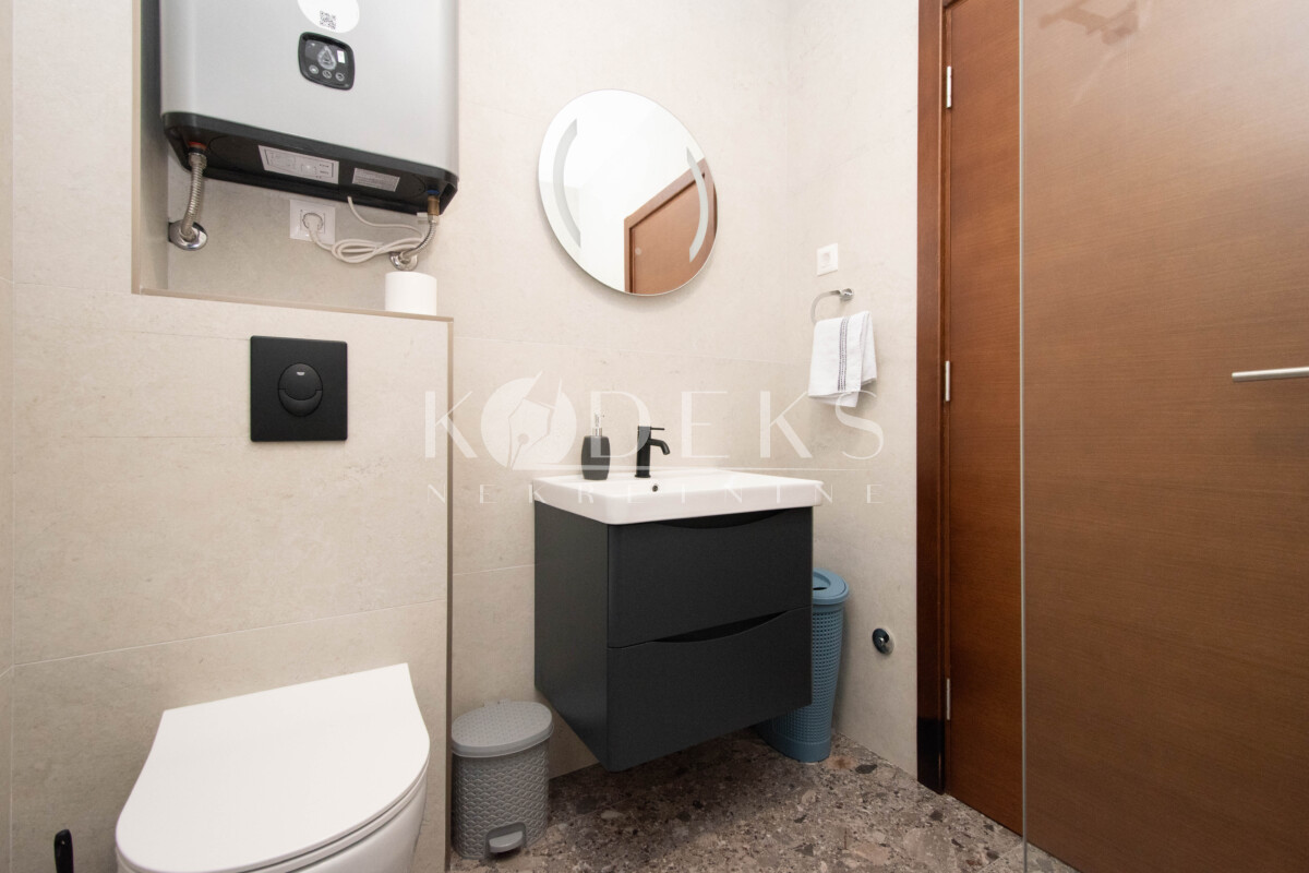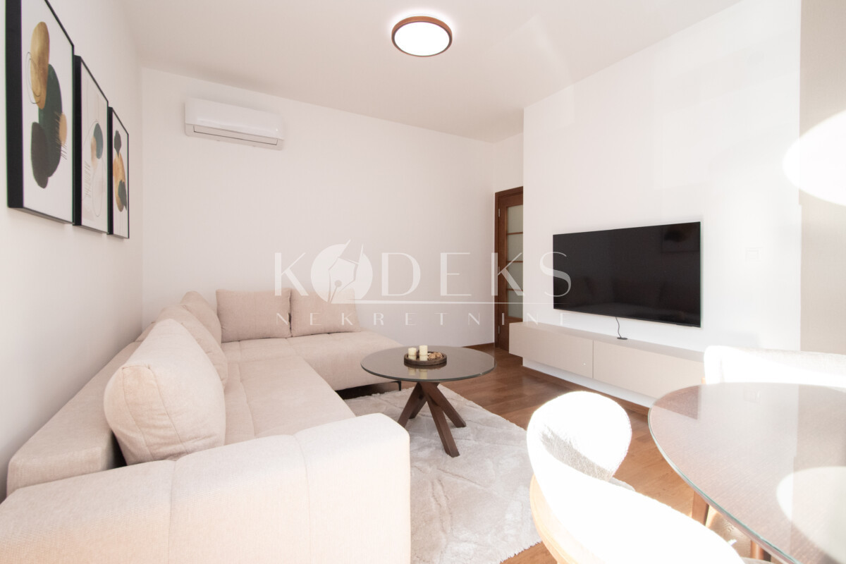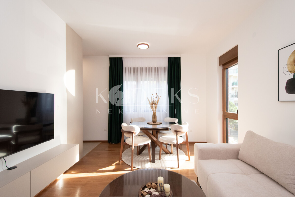 Izdaje se luksuzno opremljen jednosoban stan smješten na prvom stambene zgrade M residence kod Vezirovog mosta.