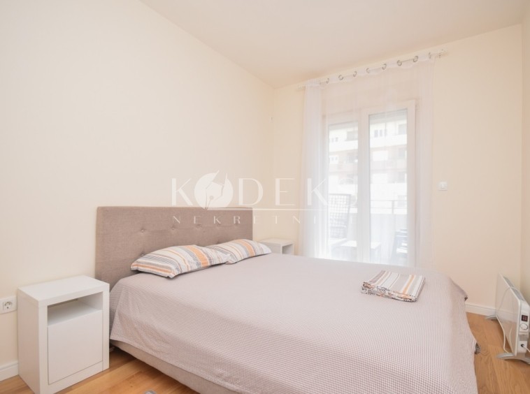 Izdaje se lijepo opremljen jednosoban stan smješten na šestom (nije posljednji) spratu stambene zgrade u kvartu Central point (faza V).