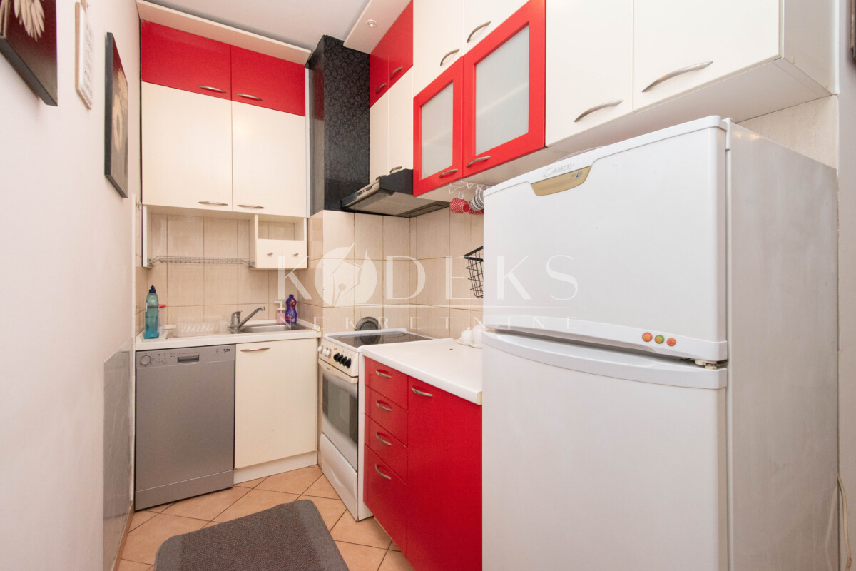 Struktura: Dnevna soba koja je povezana sa kuhinjom i trpezarijom i ima izlaz na zastakljenu terasu, spavaća soba i kupatilo.