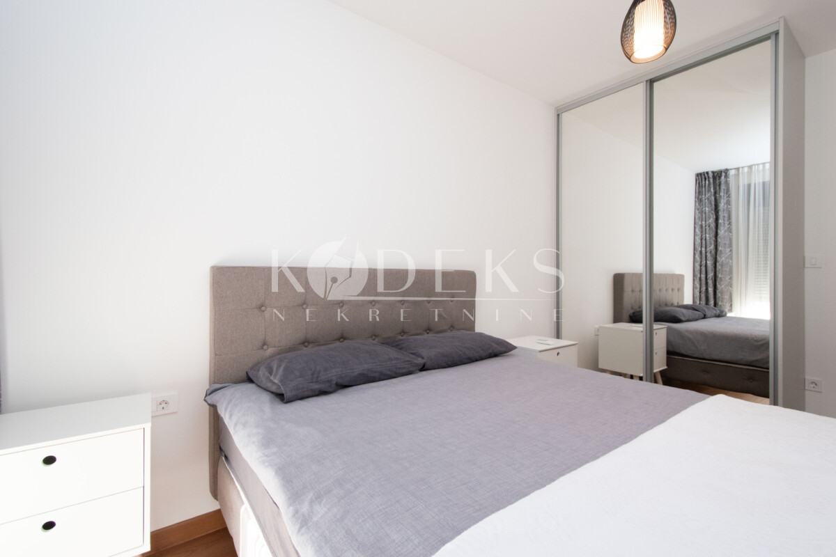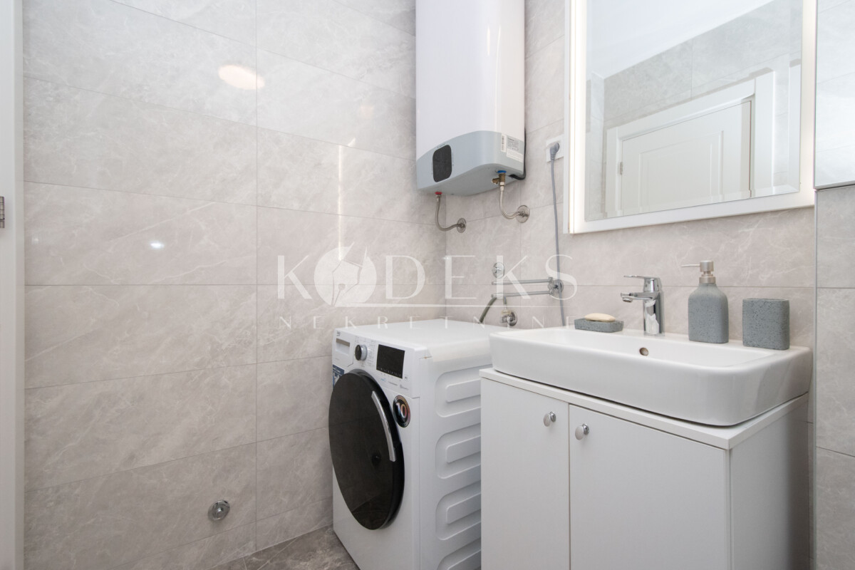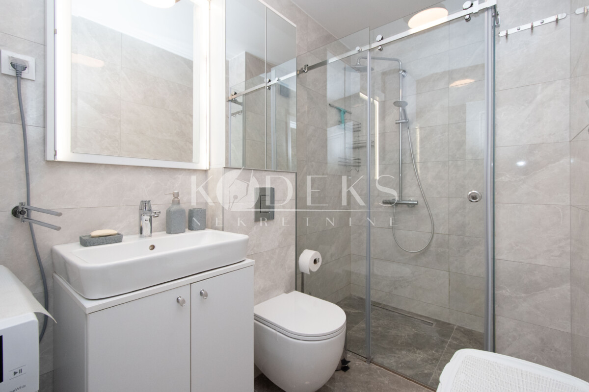 Nalazi se u prestižnoj zgradi poznatoj po smart home sistemu pomoću kojeg možete kontrolisati rasvjetu, roletne, klimatizaciju, pa čak i isključiti i uključiti dotok vode u stanu samo jednim klikom na panel ili na telefonu.